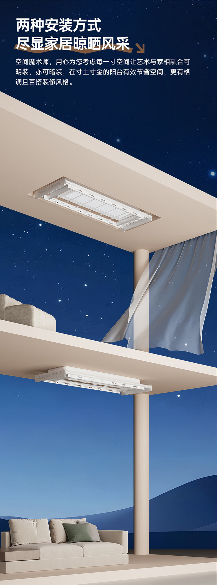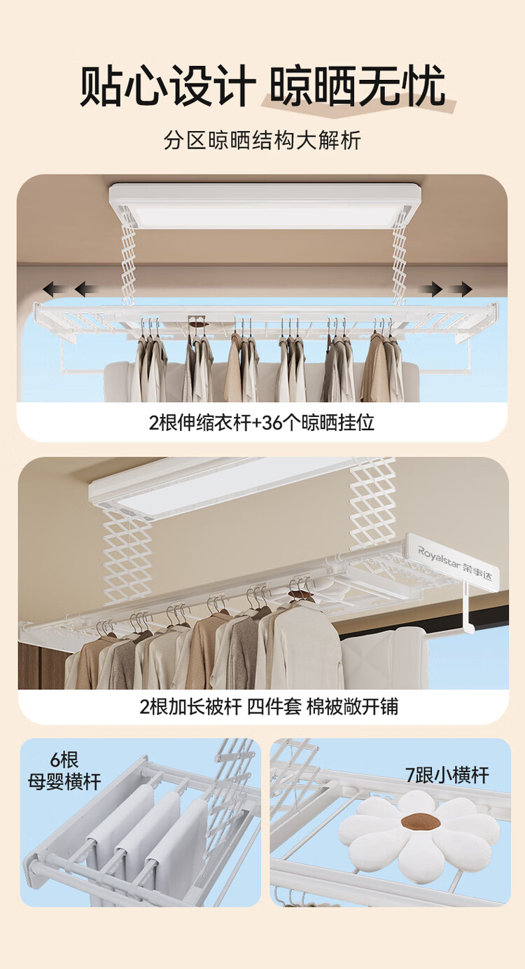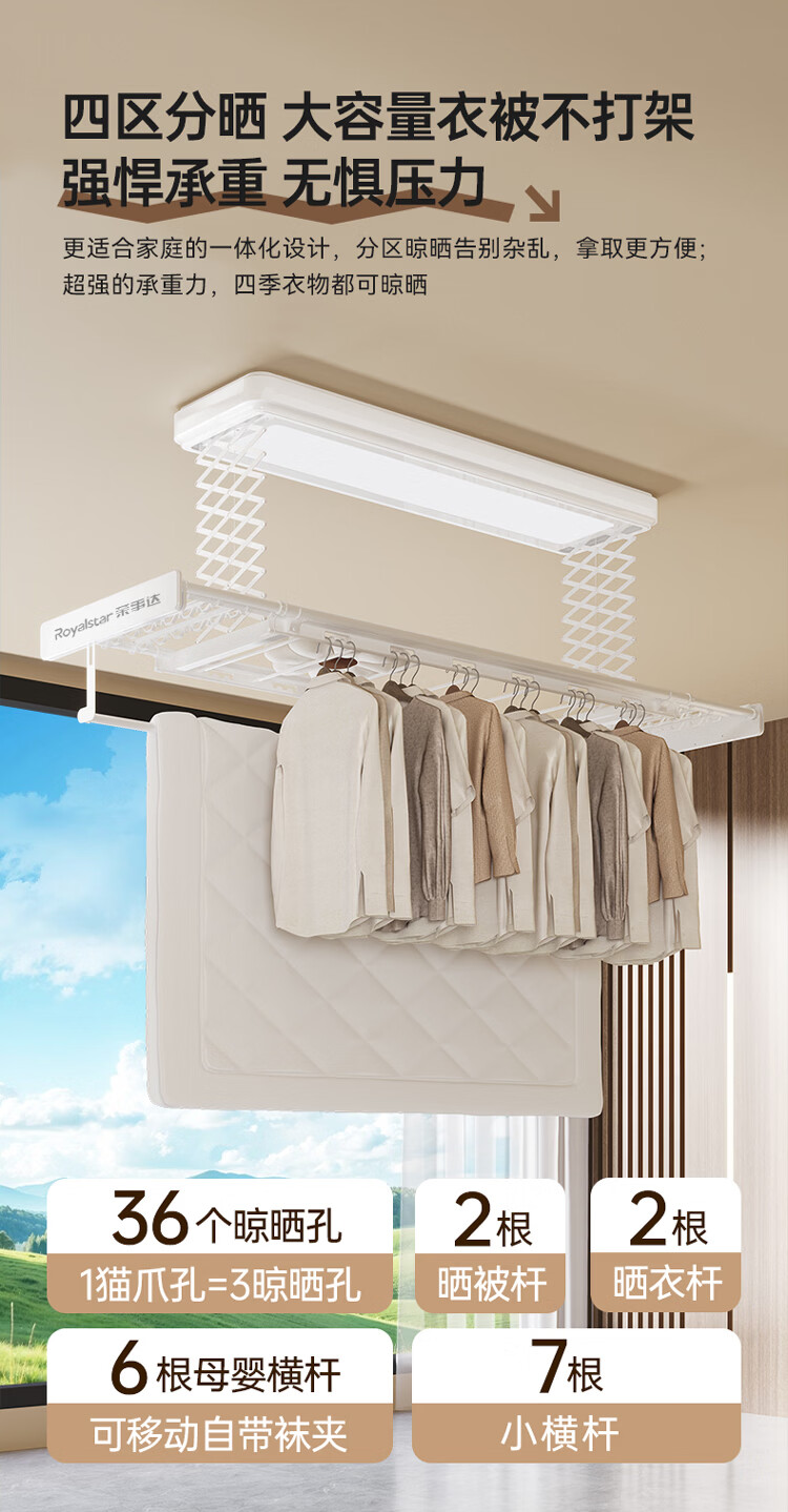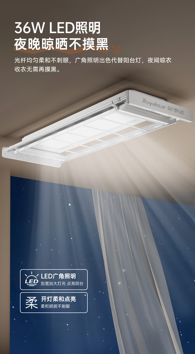 荣事达电动晾衣架隐形晾衣架阳台专用大屏照明晾衣架