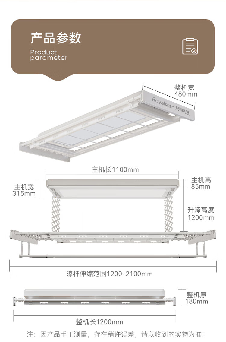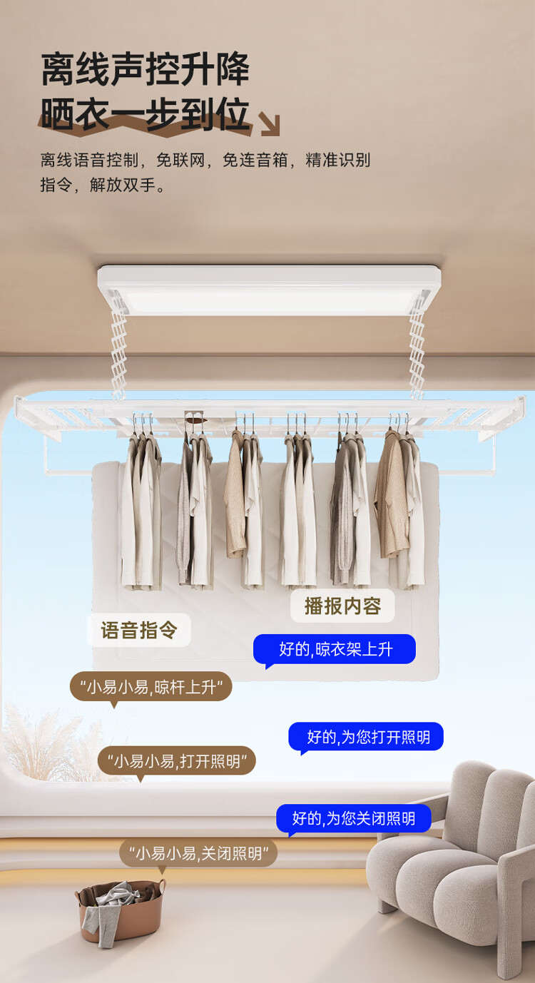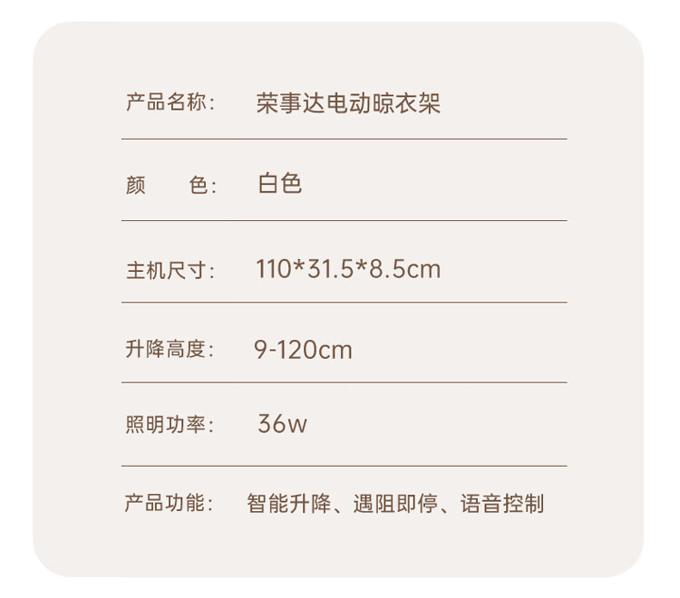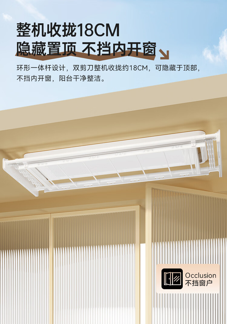 荣事达电动晾衣架隐形晾衣架阳台专用大屏照明晾衣架