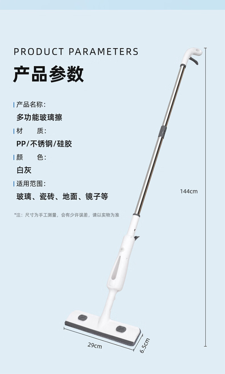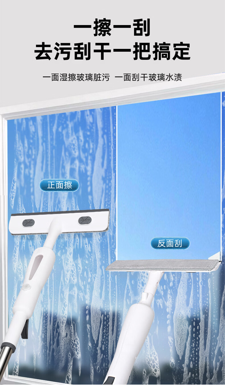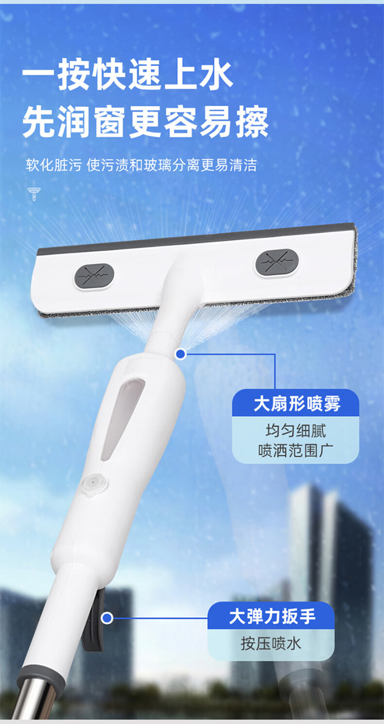 美家生活擦玻璃神器喷水刮水擦窗器刮擦一体玻璃清洁器长杆家用保洁用专用