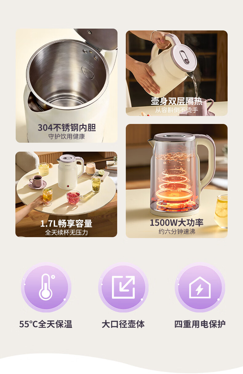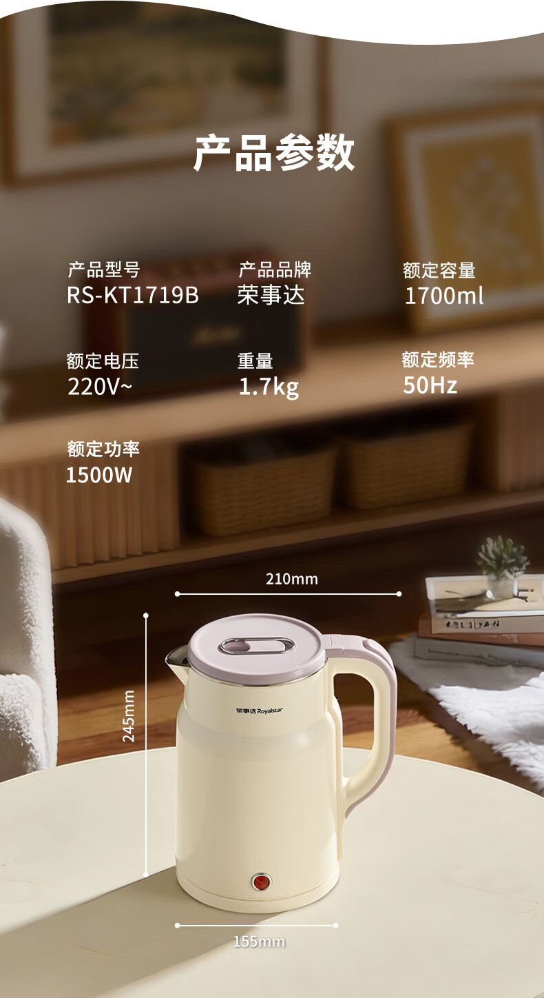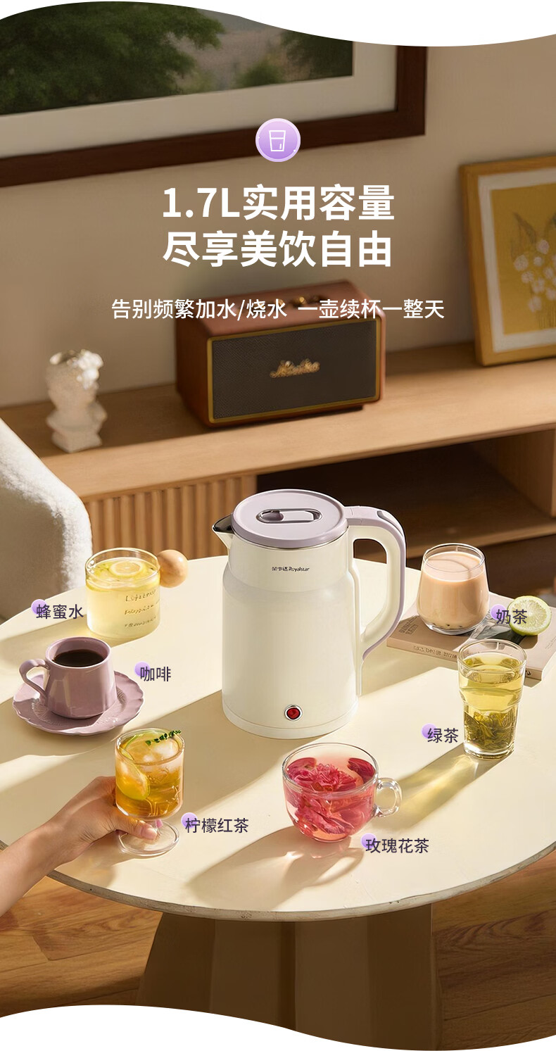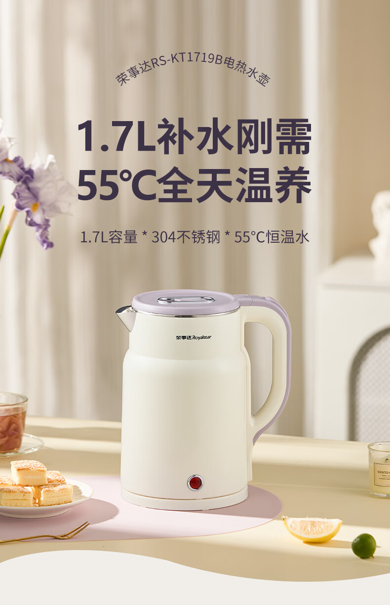 荣事达(Royalstar)热水壶烧水壶恒温电水壶 1.7L大容量0涂层双层防烫1500W快速加热自动保温开水壶RS-KT1719B