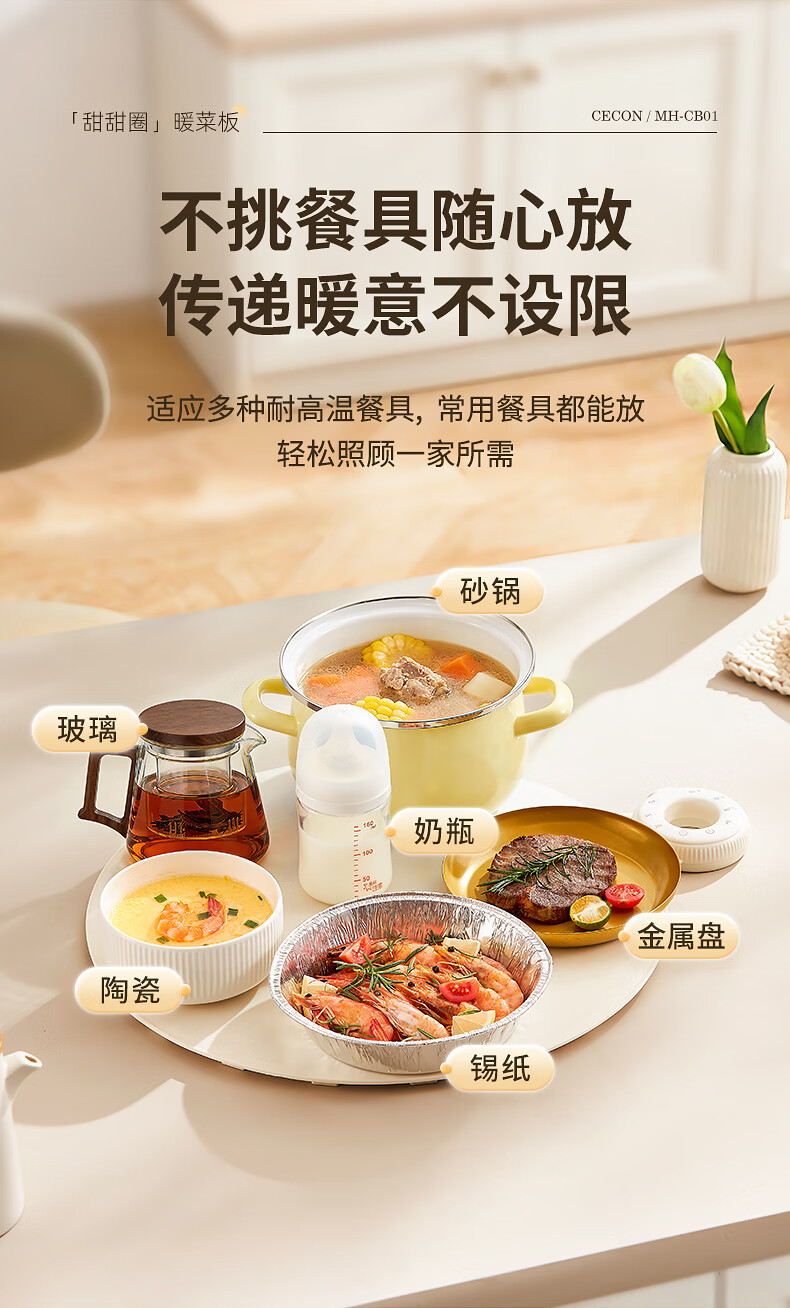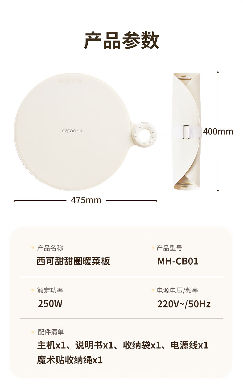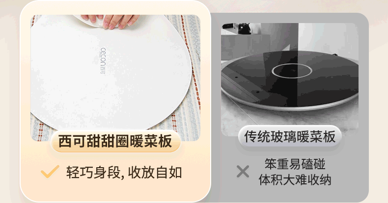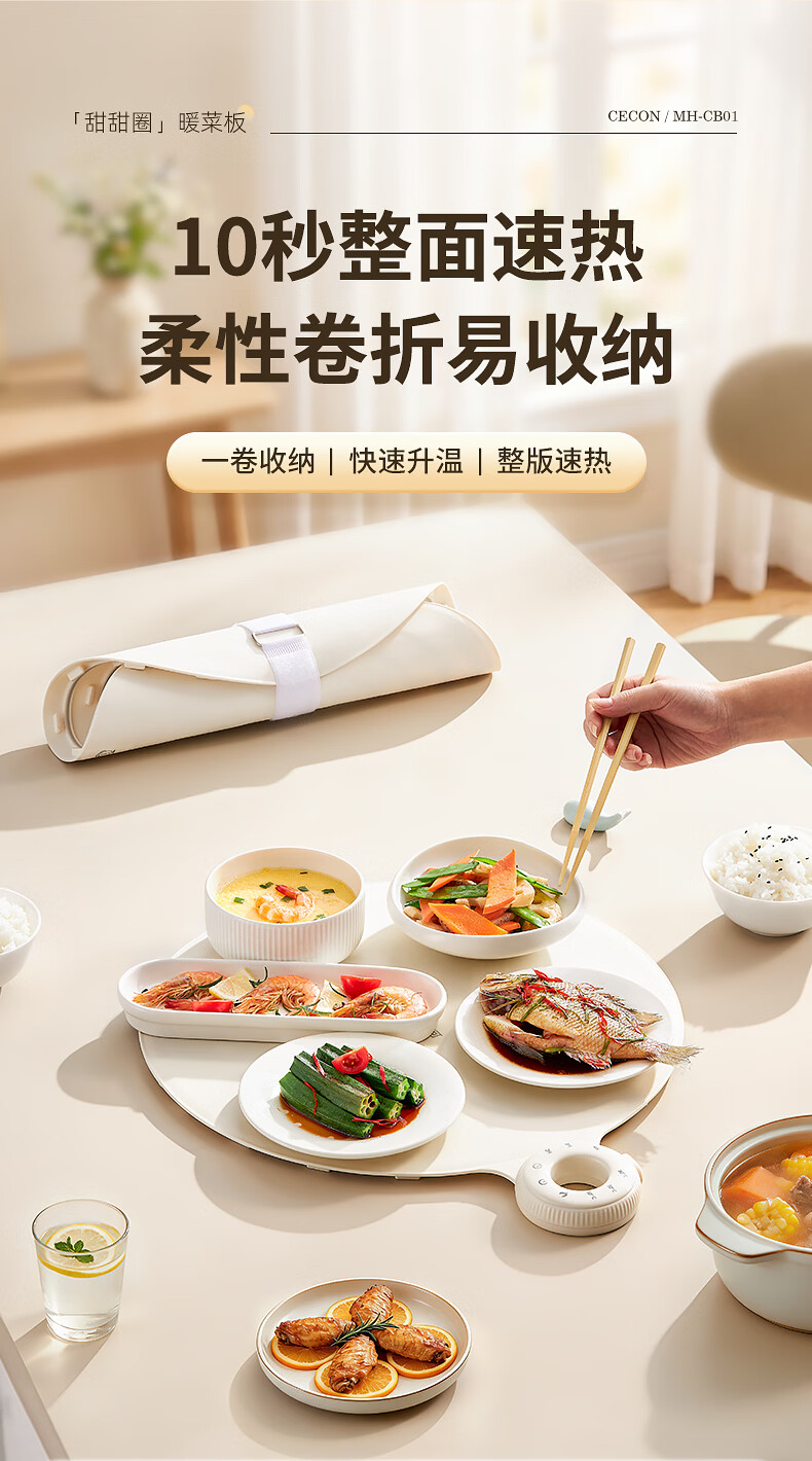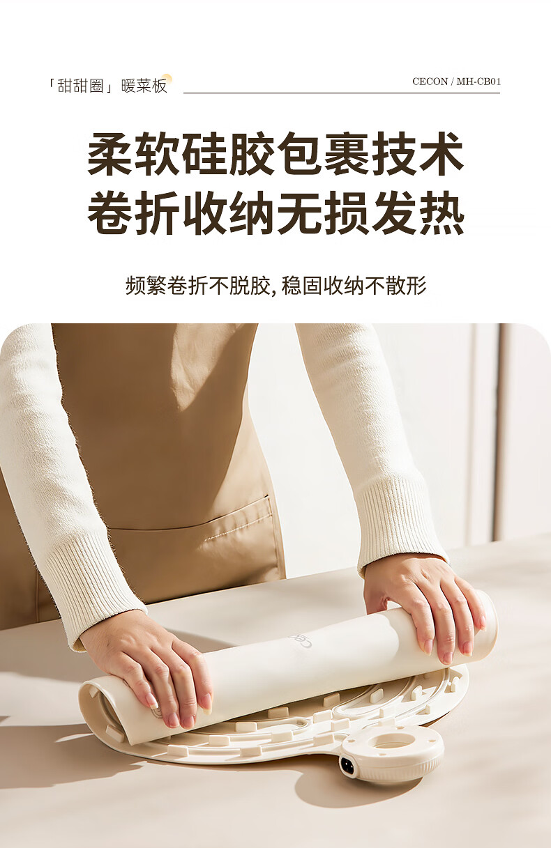 西可暖菜板 热菜保温板 速热加热板多功能家用可折叠柔性硅胶加热垫圆形2025新款智能加热恒温MH-CB01