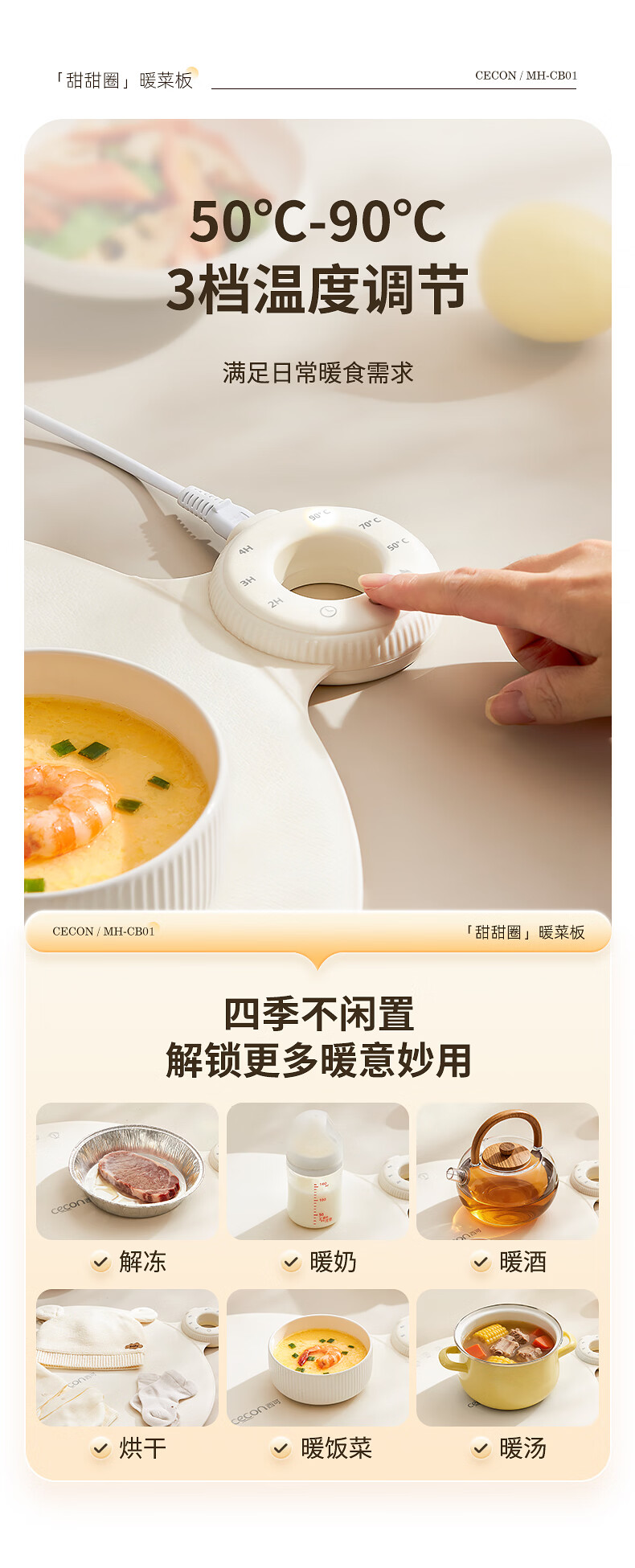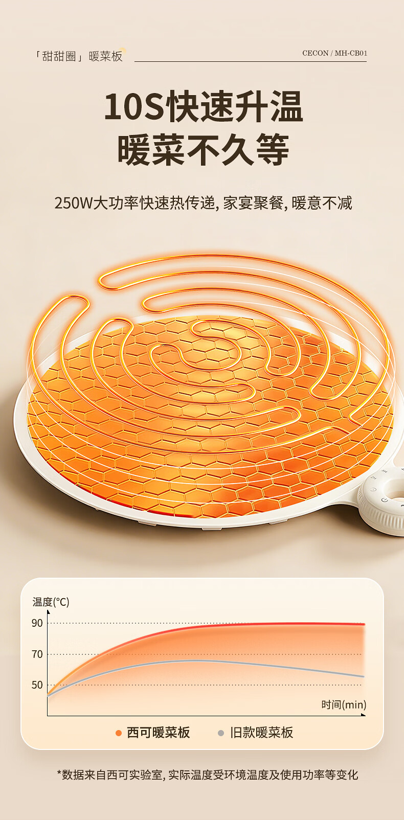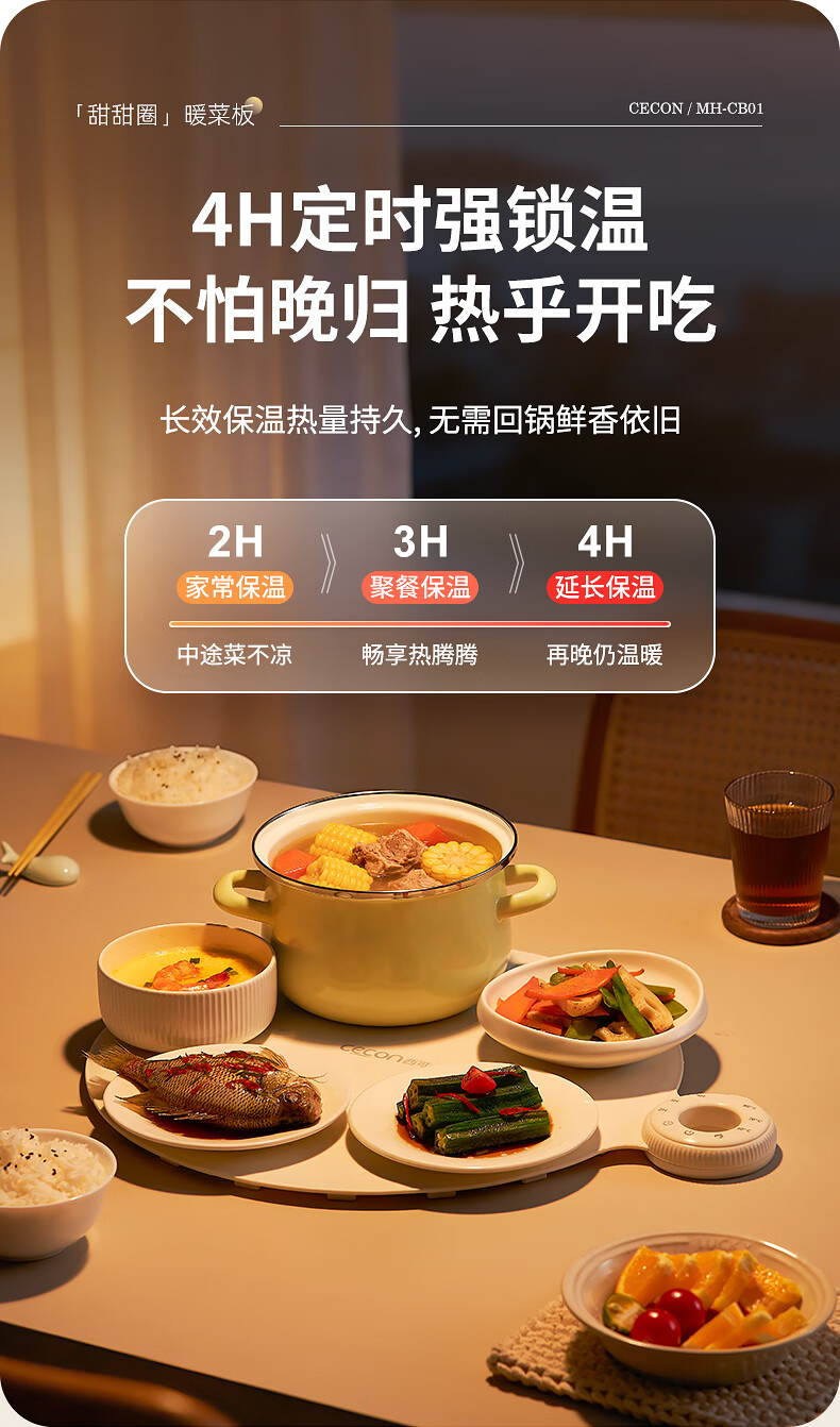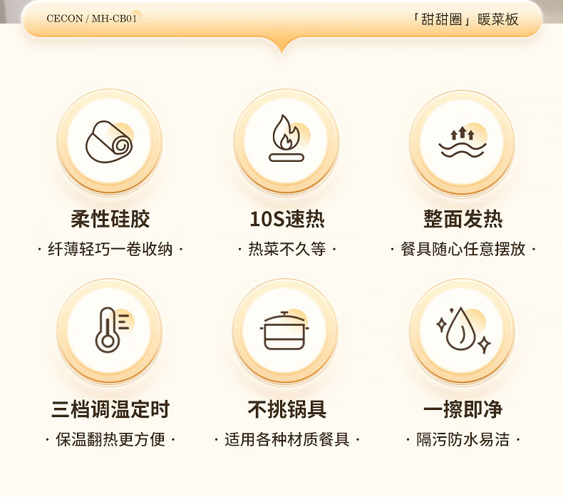 西可暖菜板 热菜保温板 速热加热板多功能家用可折叠柔性硅胶加热垫圆形2025新款智能加热恒温MH-CB01