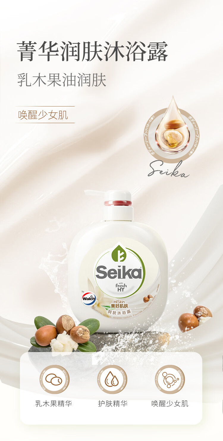 菁华Seika沐浴露保湿滋润(清仓品效期不佳) 乳木果500ml+玫瑰500ml