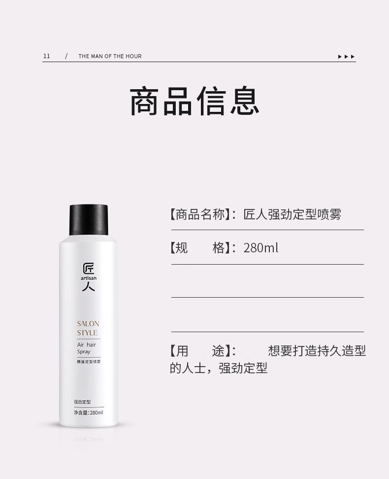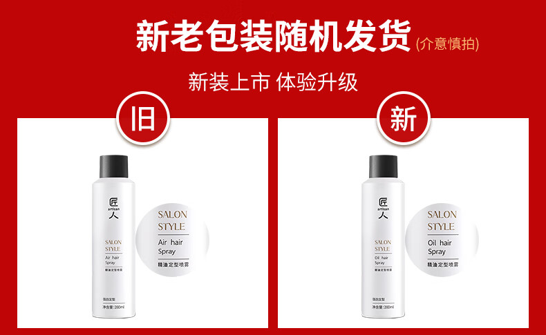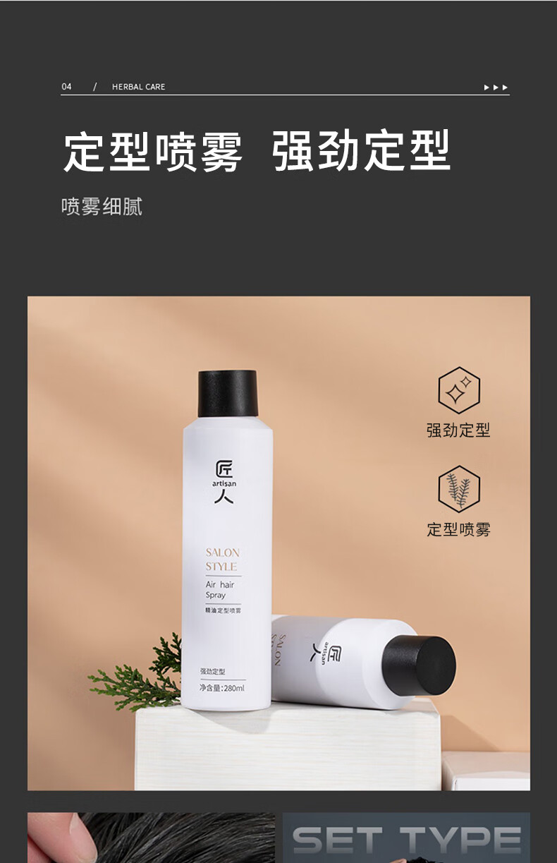 匠人精油定型喷雾男士强劲定型发胶空气感啫喱水碎发造型女士发蜡发泥 280ml 1瓶 精油定型喷雾