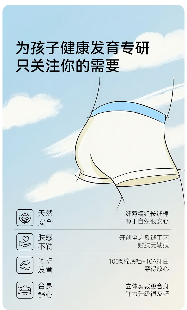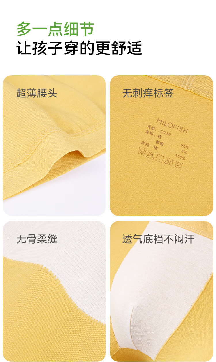 米乐鱼儿童内裤YD纯棉10A抑菌中大童四角平角短裤男女孩宝宝不夹PP 女童-元气满满- 3条 100 推荐体重24-30斤