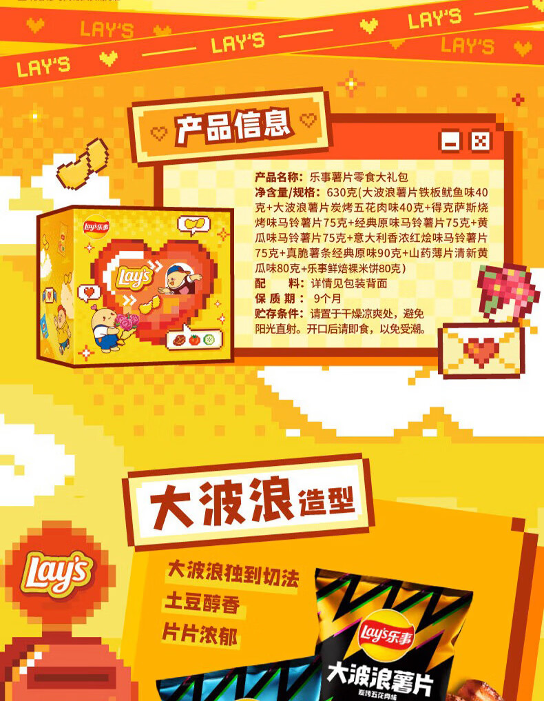 乐事(Lay's)薯片 爱意满满大礼盒 630g 零食礼盒 休闲零食 礼盒 春游零食