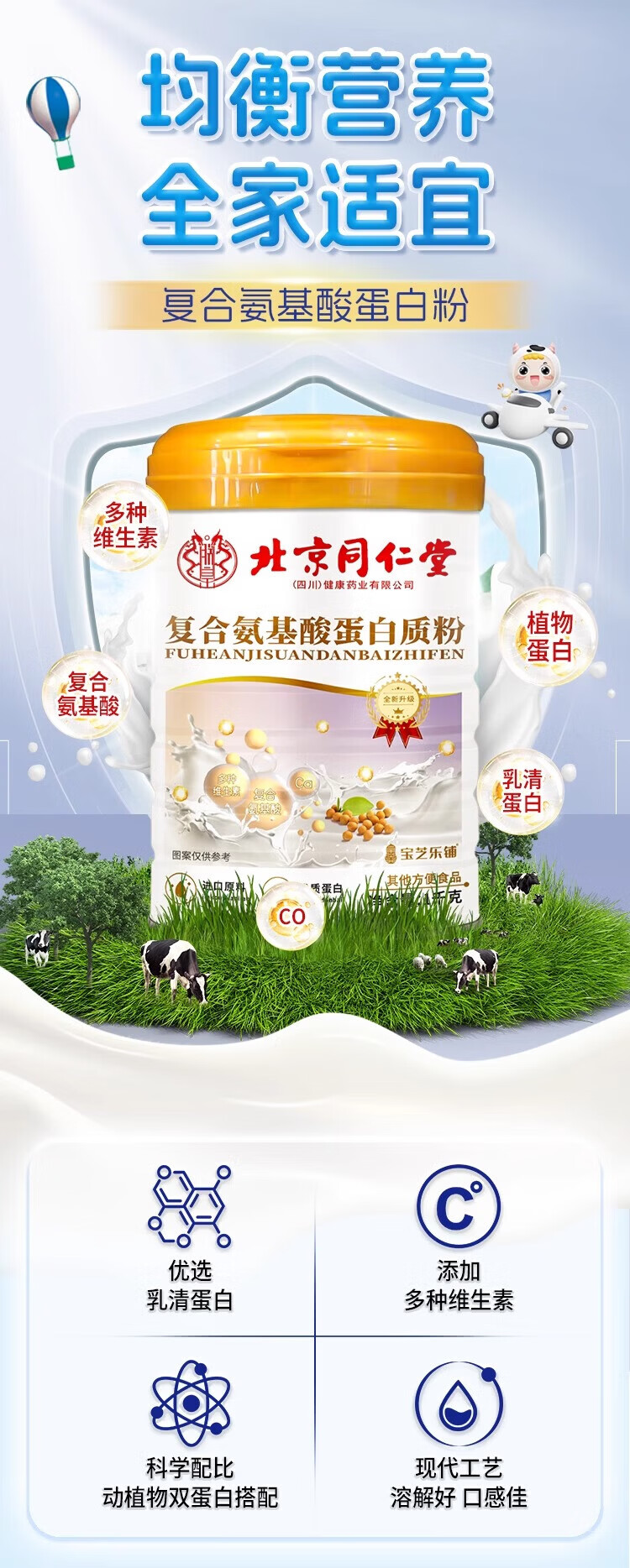 朕皇蛋白质粉老年健康营养补钙保健品营养品滋补蛋白粉 复合氨基酸蛋白质粉 1000g*1桶 1桶装