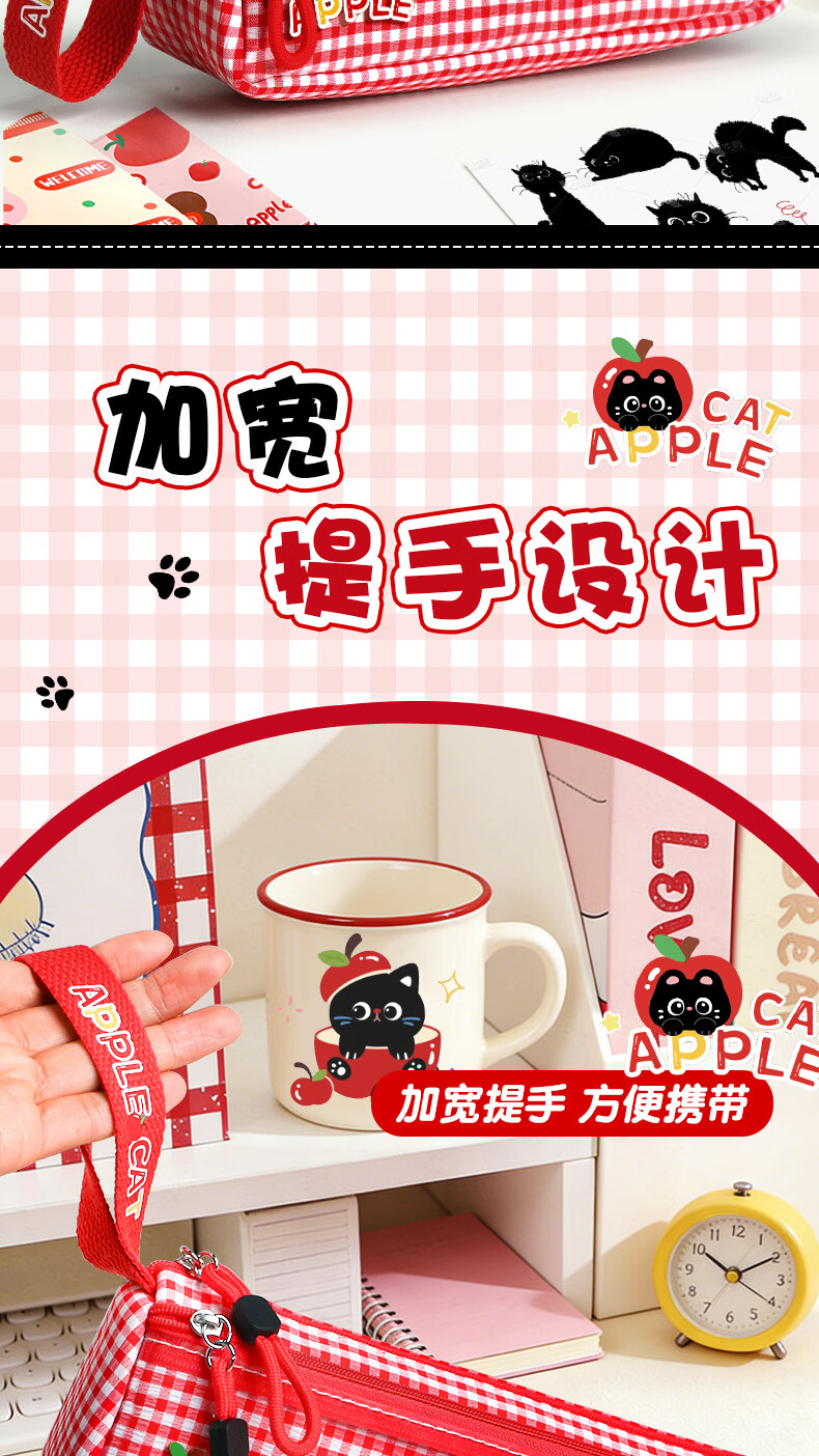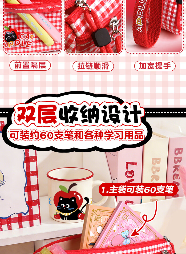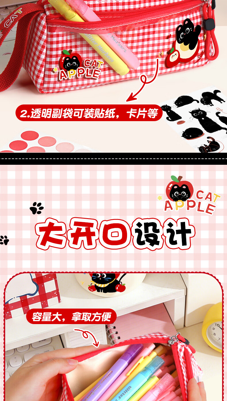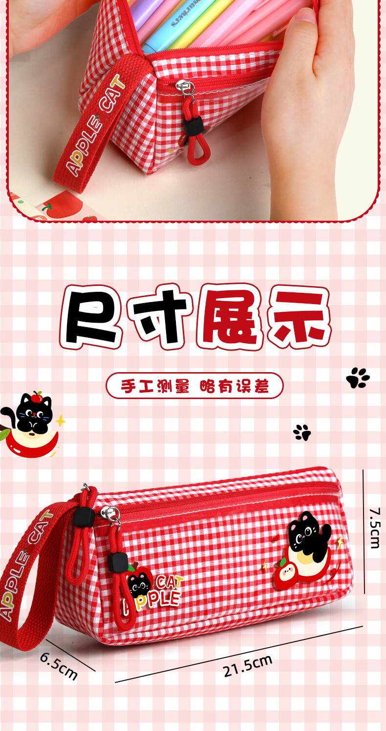 三年二班三角笔袋女简约风学习小学生笔袋三年级美术袋收纳高颜值痛包大容量透明文具袋初中生用铅笔盒补习 粉色款
