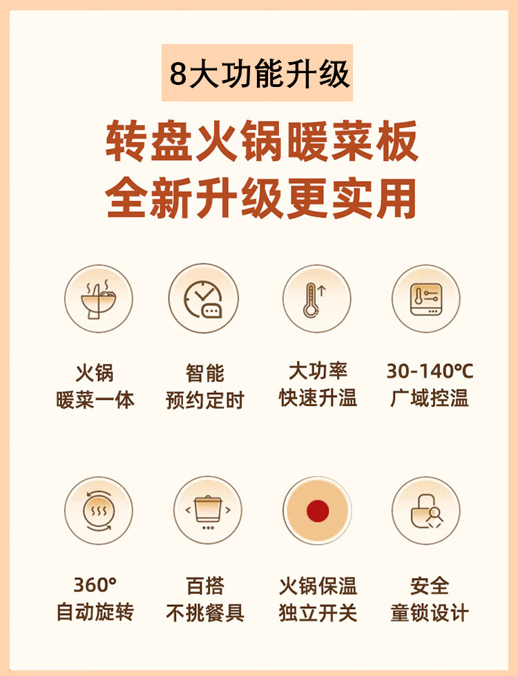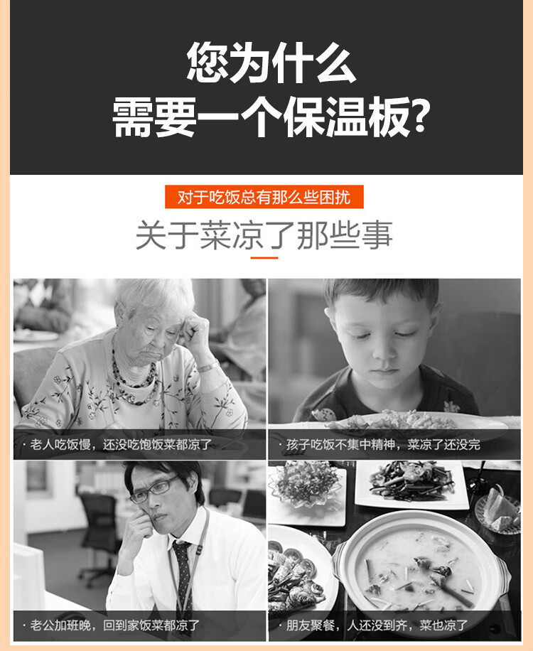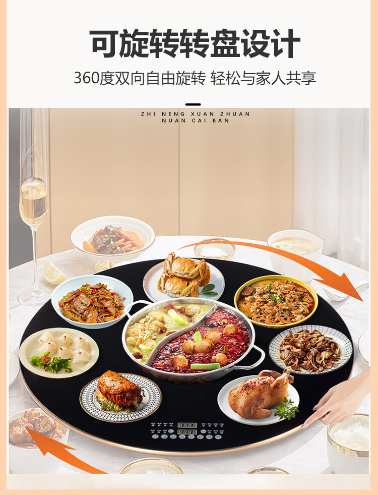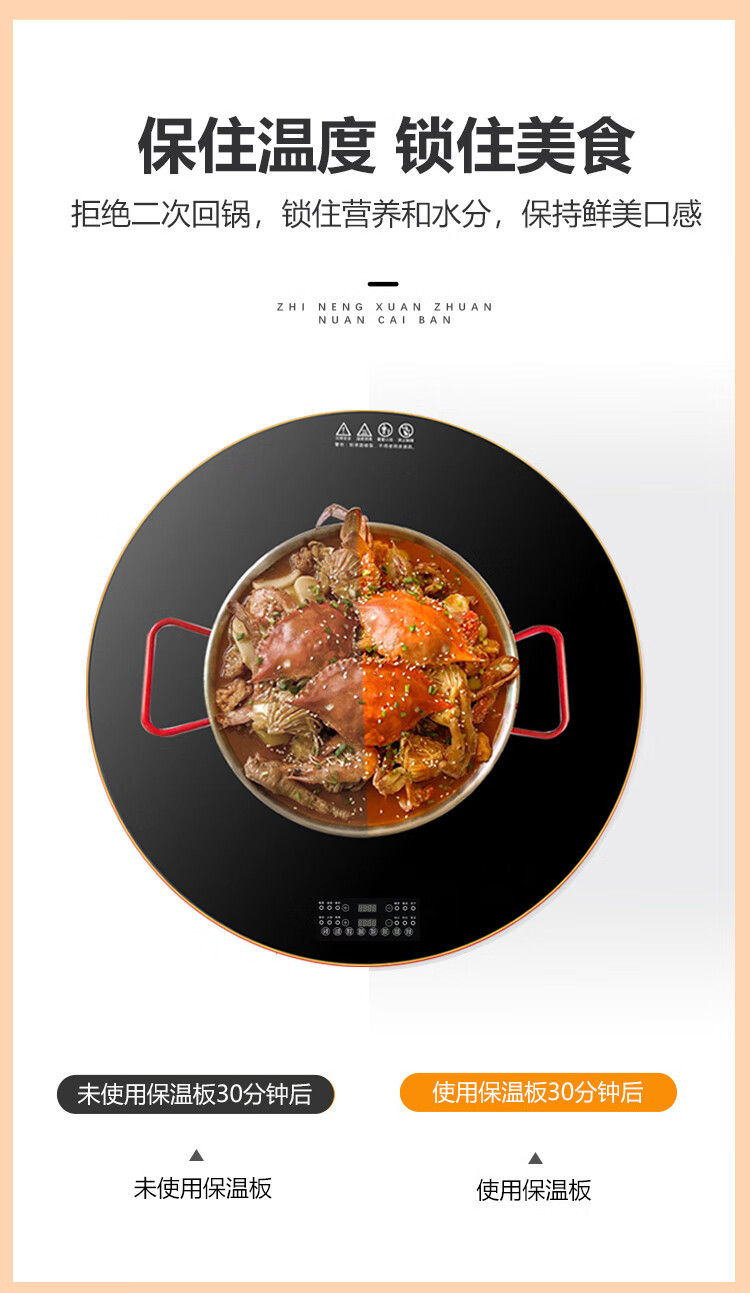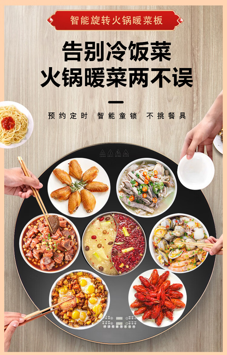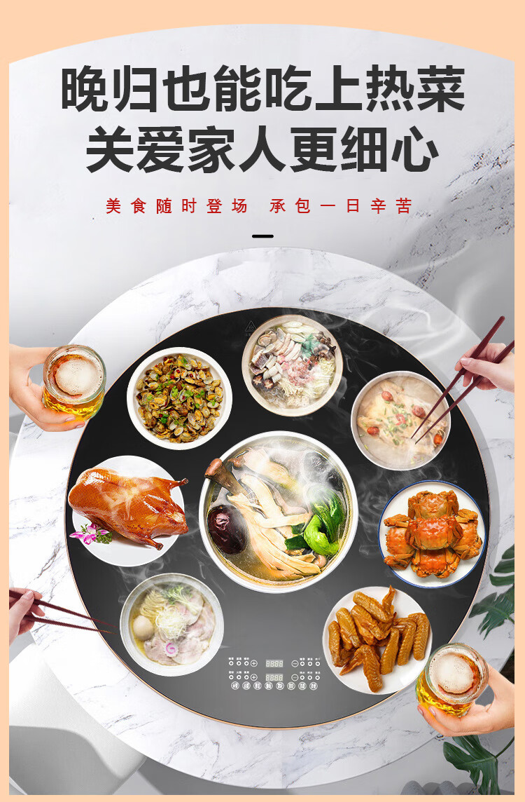 客家好太太80CM 保温暖菜板火锅+智能电动旋转饭菜保温板热菜板加热旋转餐桌 80cm自动旋转火锅款(白岩纹) 80cm 80