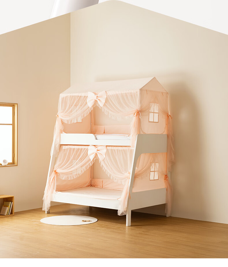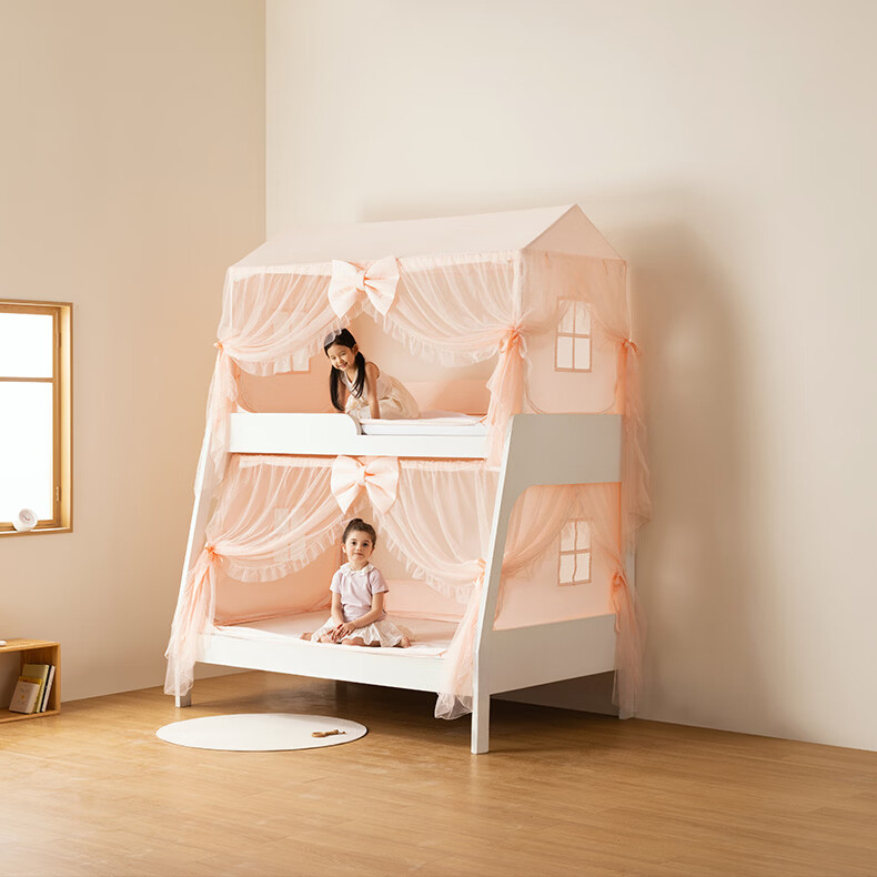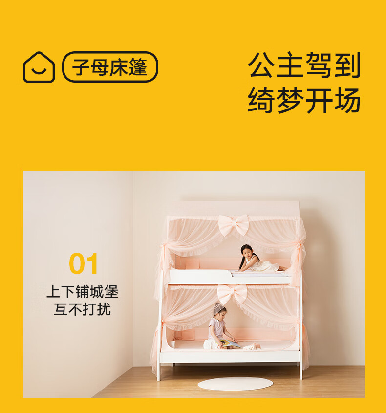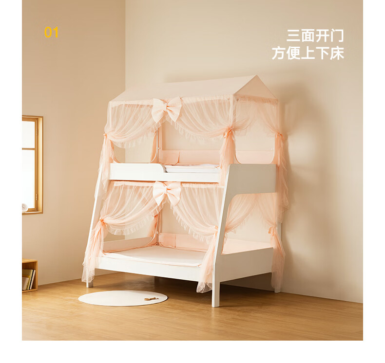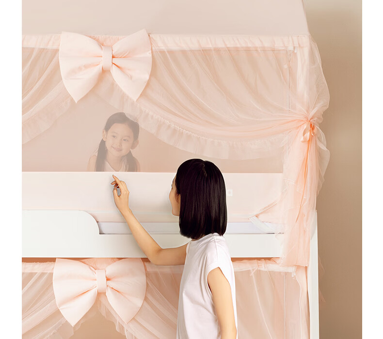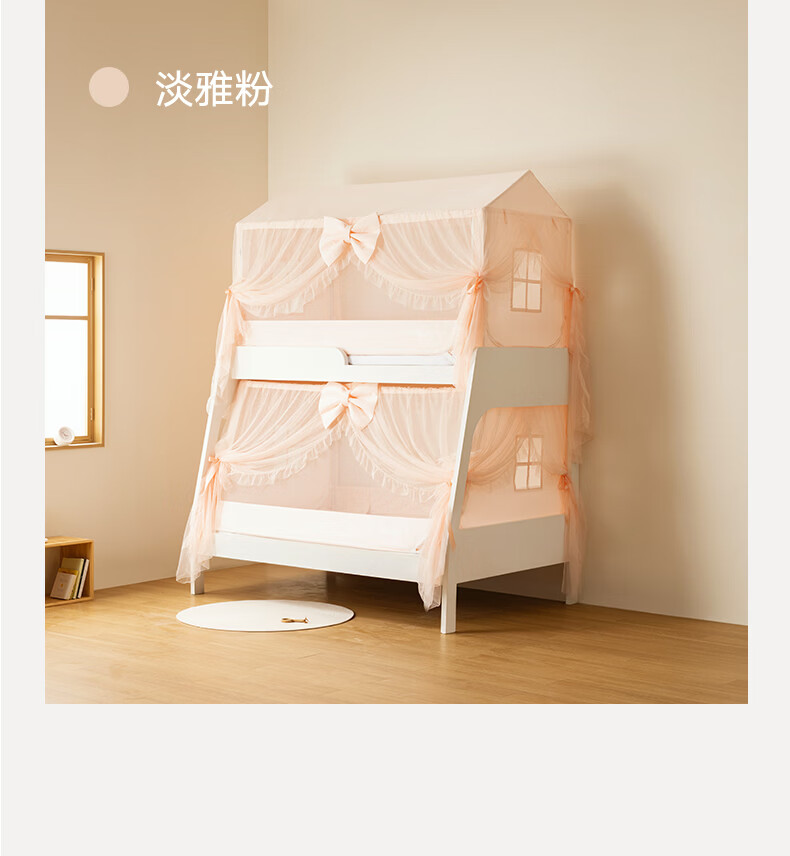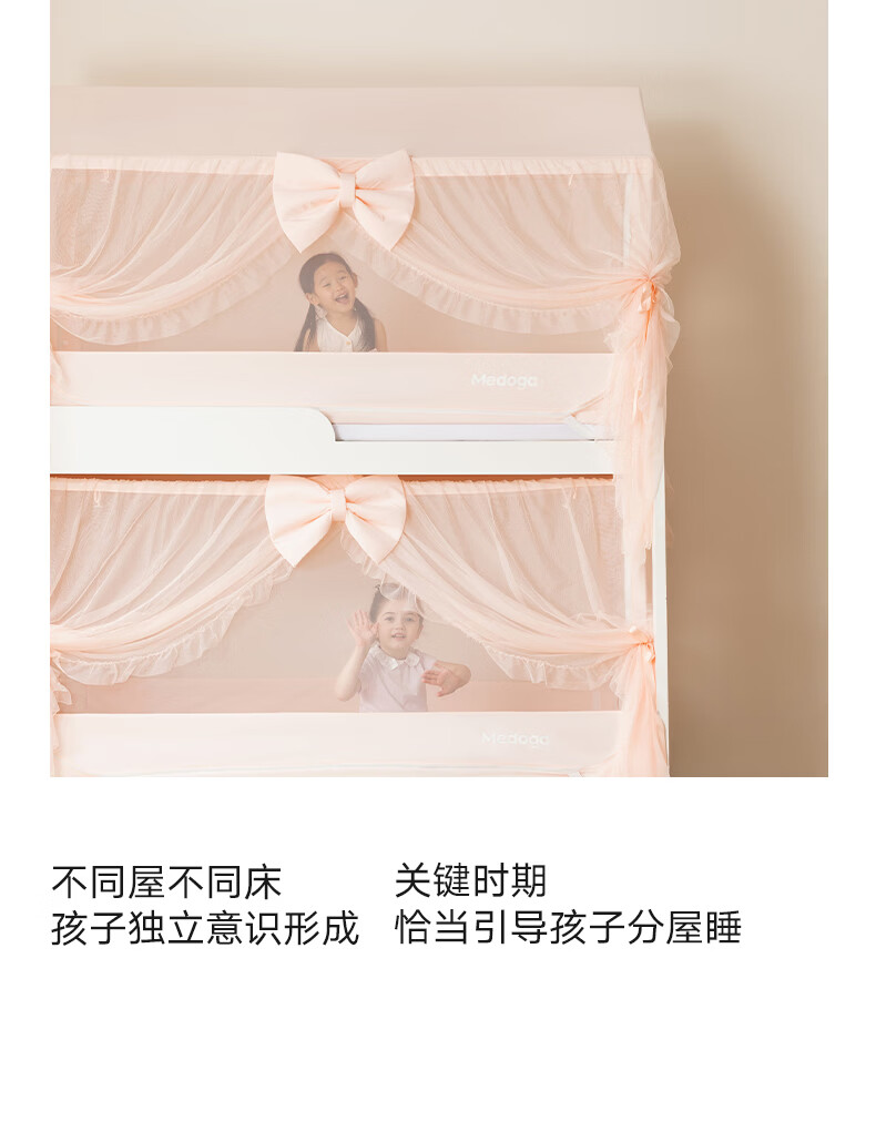 美朵嘉(MEDOGA)26年新款子母床篷蚊帐A类床上帐篷家用分床神器儿童卧室睡防蚊罩 甜心公主 淡雅粉【子母床篷】U型三开门 150*190*90【下铺】
