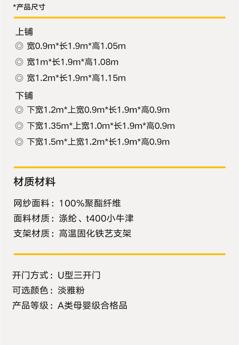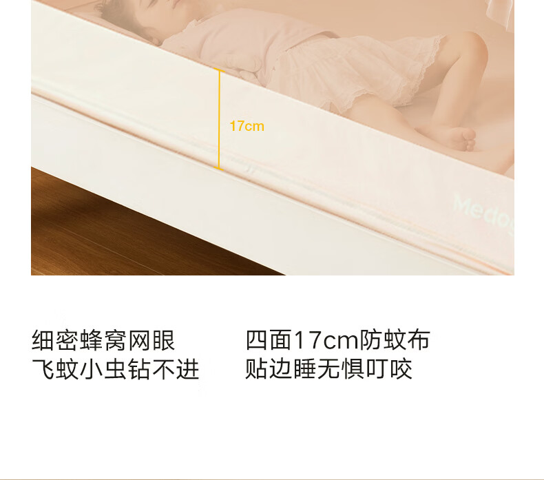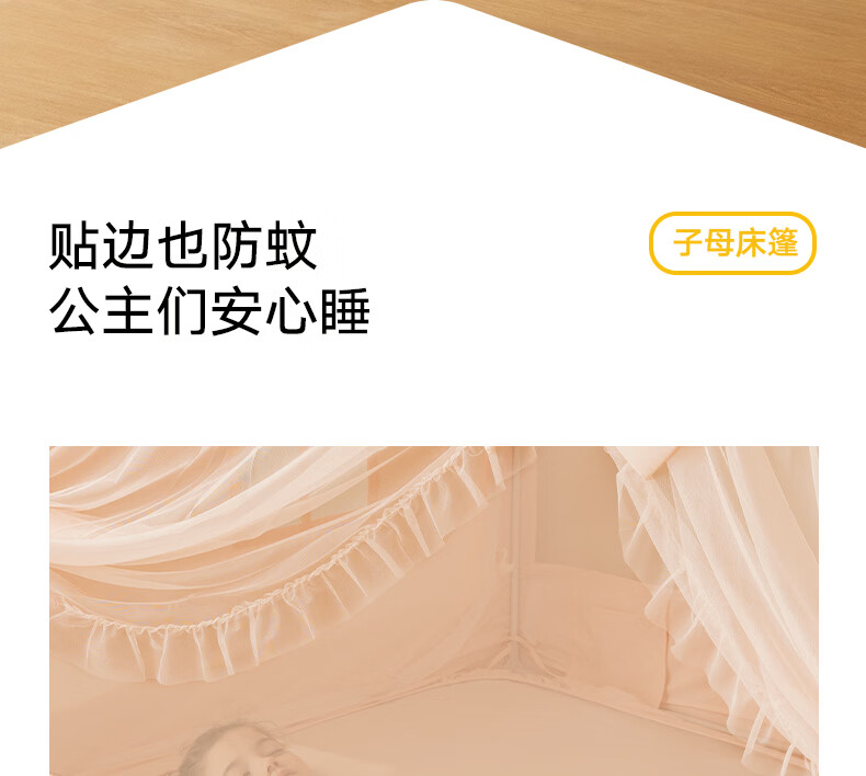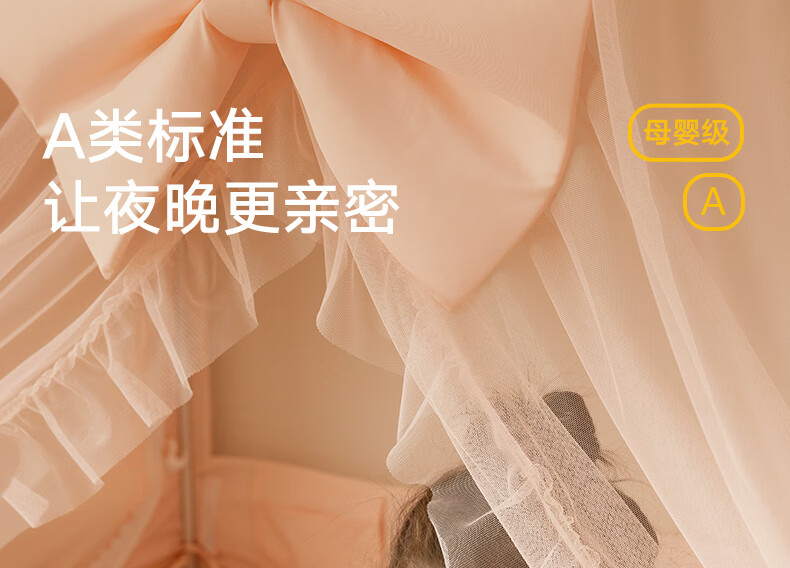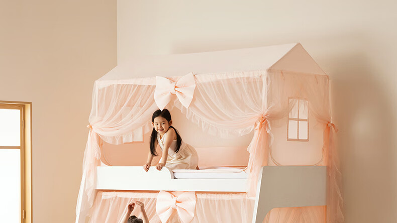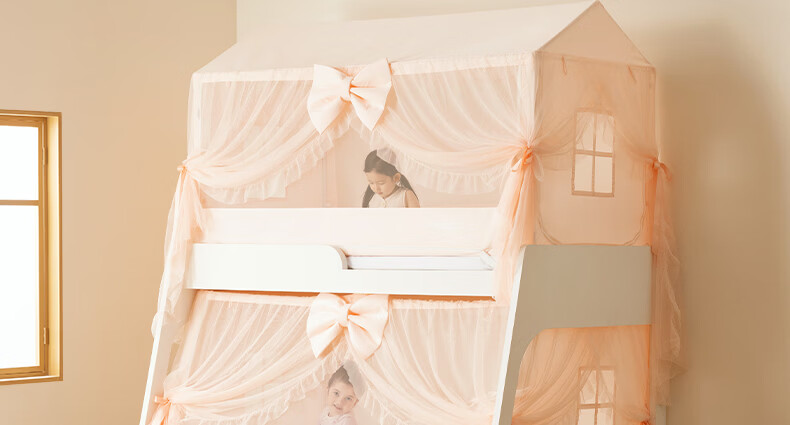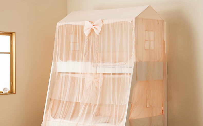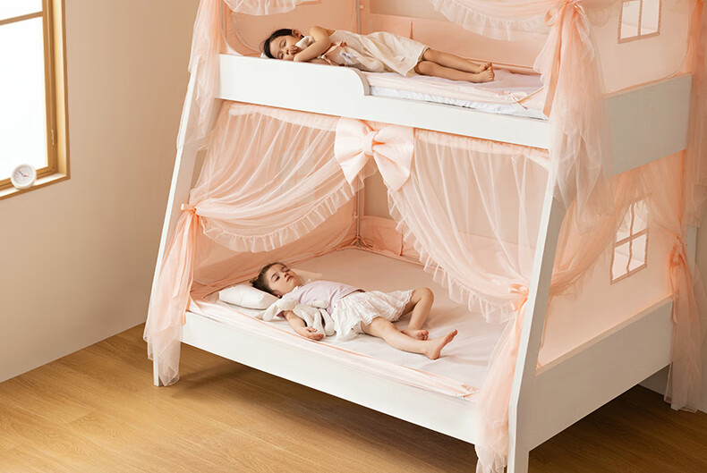 美朵嘉(MEDOGA)26年新款子母床篷蚊帐A类床上帐篷家用分床神器儿童卧室睡防蚊罩 甜心公主 淡雅粉【子母床篷】U型三开门 150*190*90【下铺】