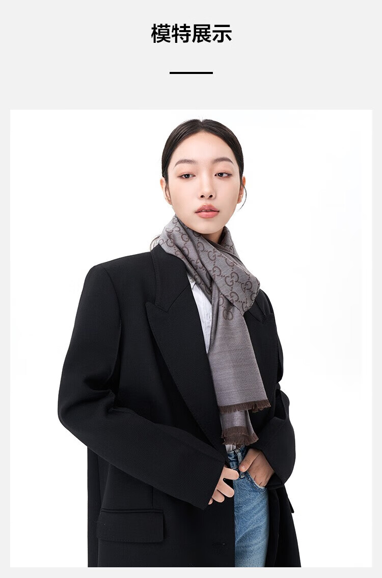 古驰(GUCCI)男女同款双G双面提花羊毛流苏围巾 炭黑色 165904 3G646 1100