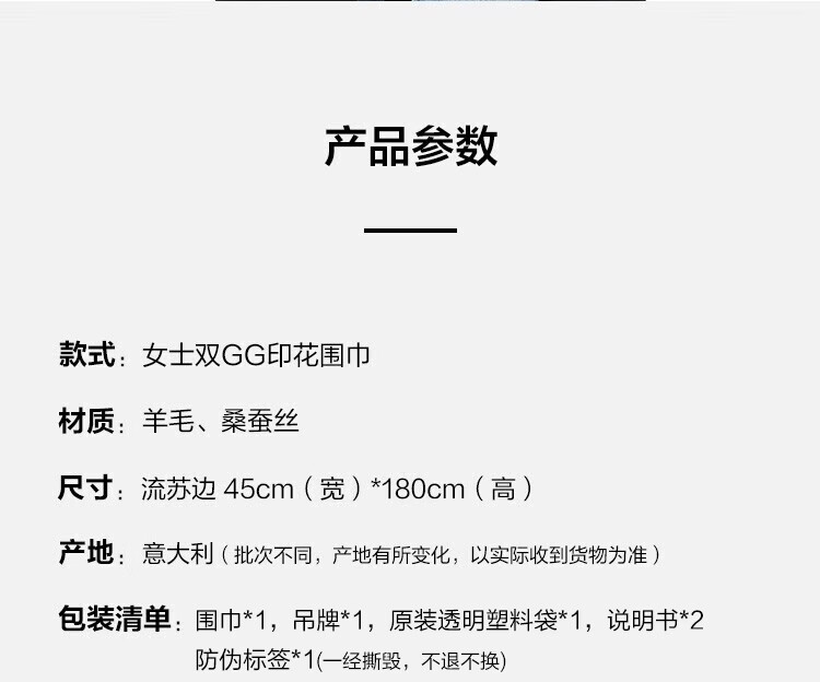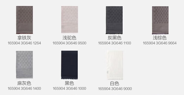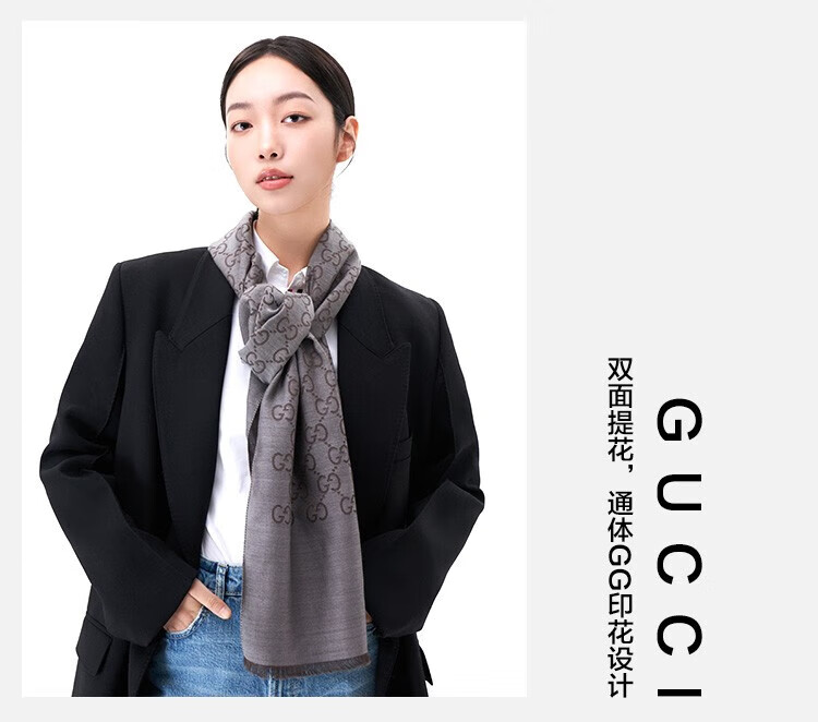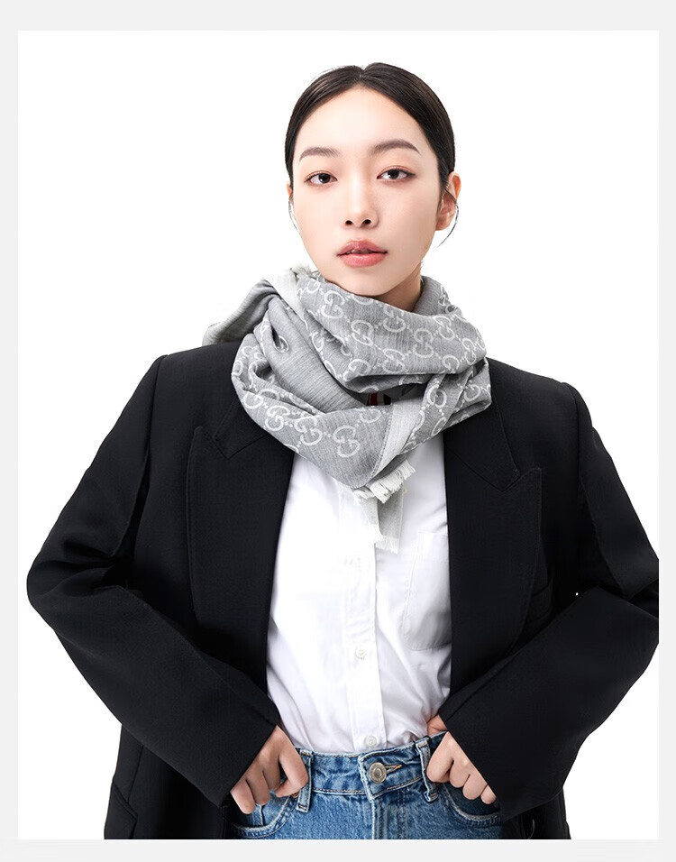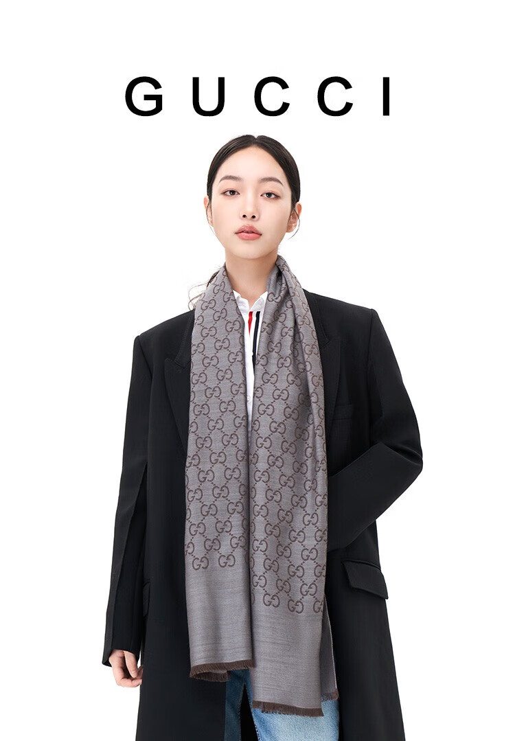 古驰(GUCCI)男女同款双G双面提花羊毛流苏围巾 麻灰色 165904 3G646 1400