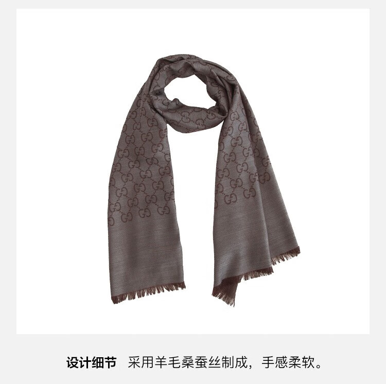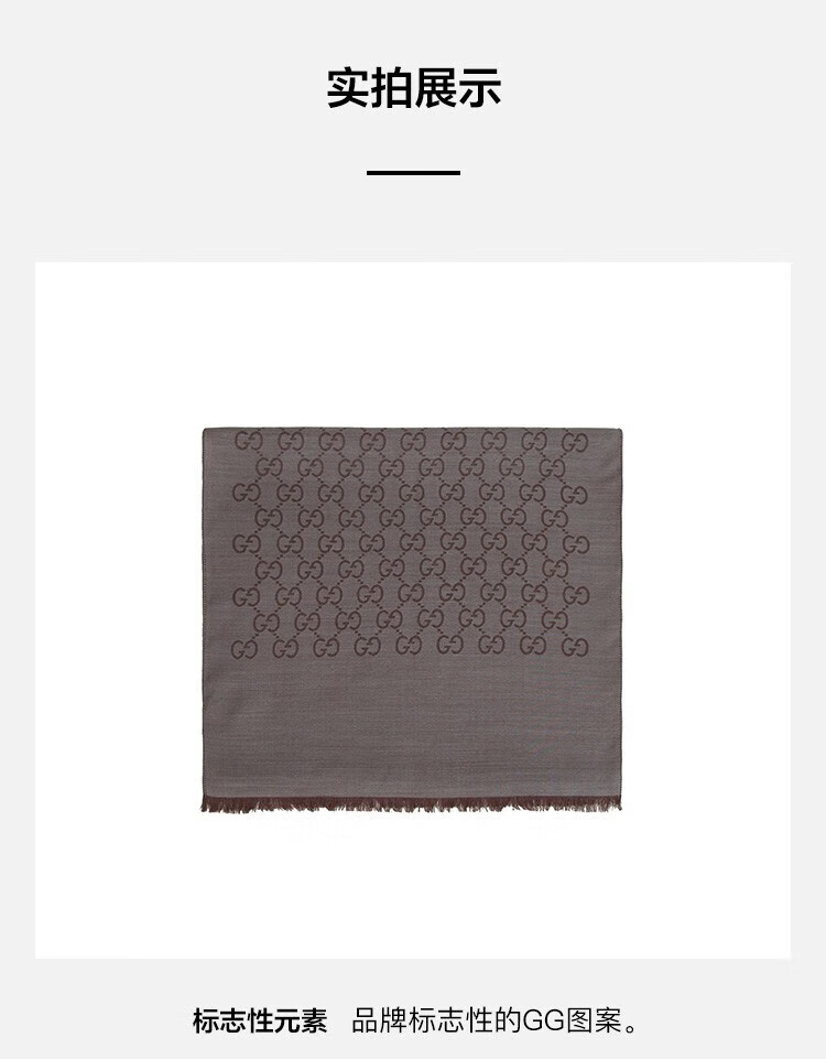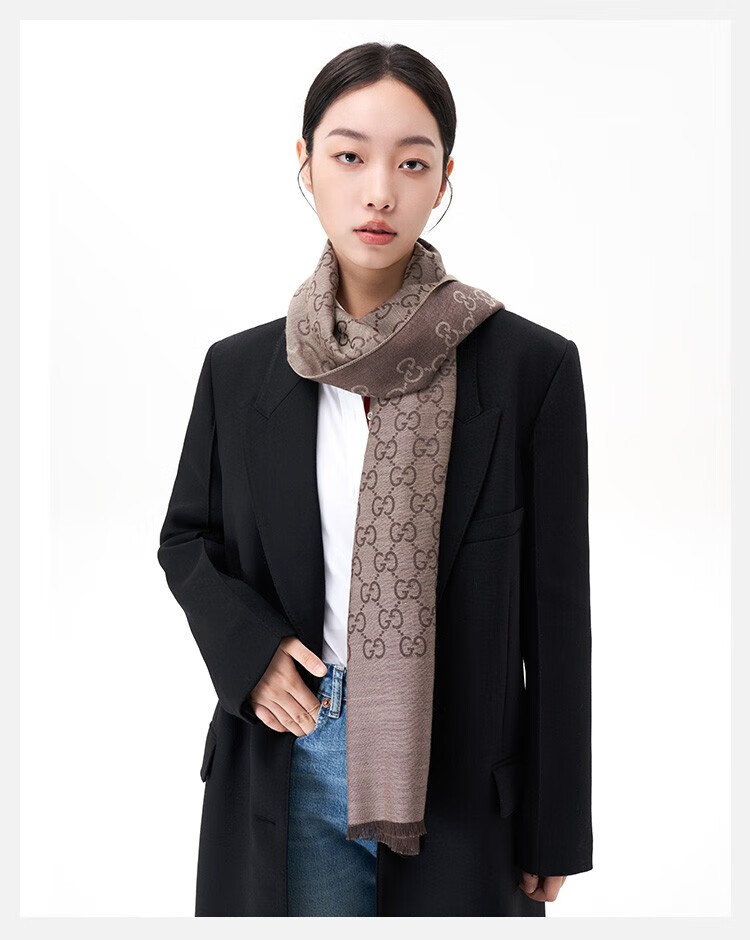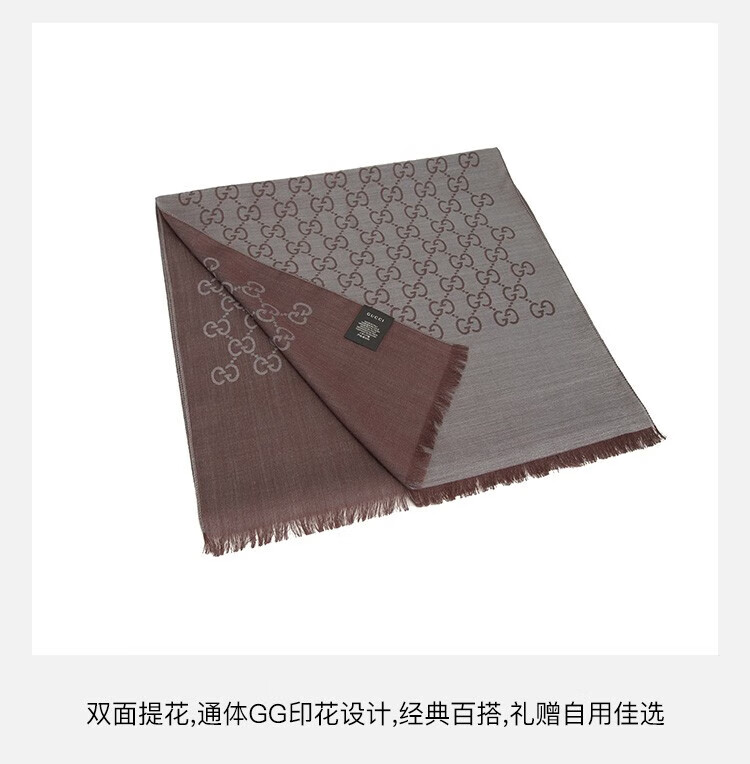 古驰(GUCCI)男女同款双G双面提花羊毛流苏围巾 浅棕色 165904 3G646 9664
