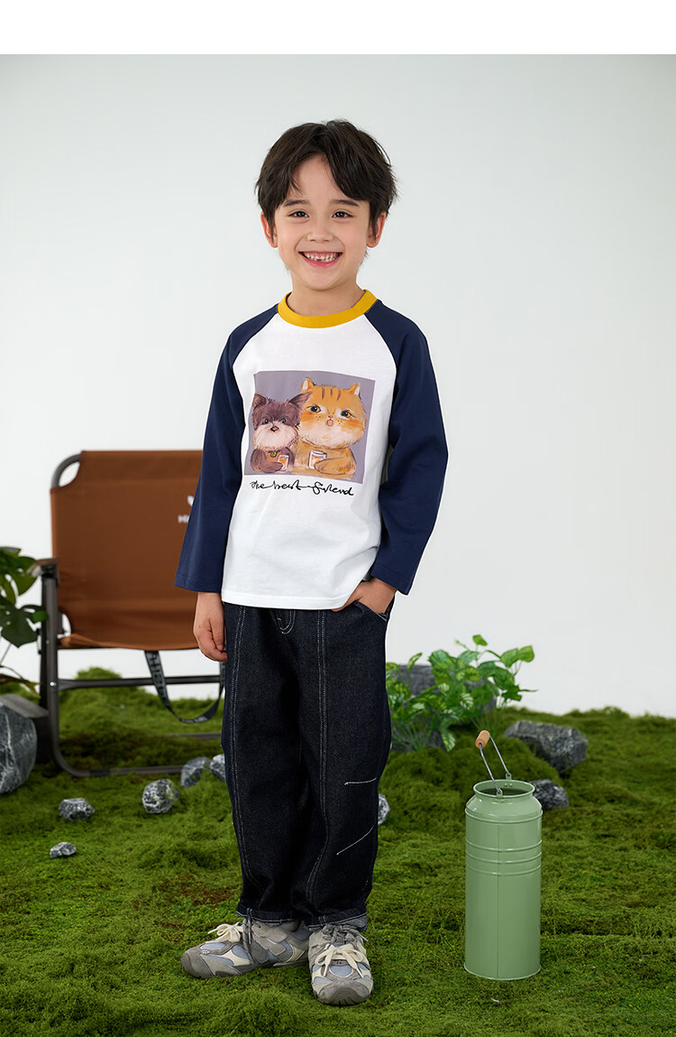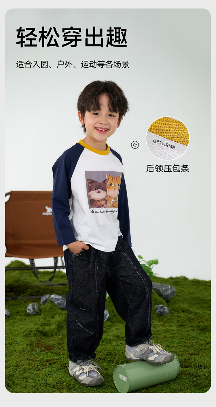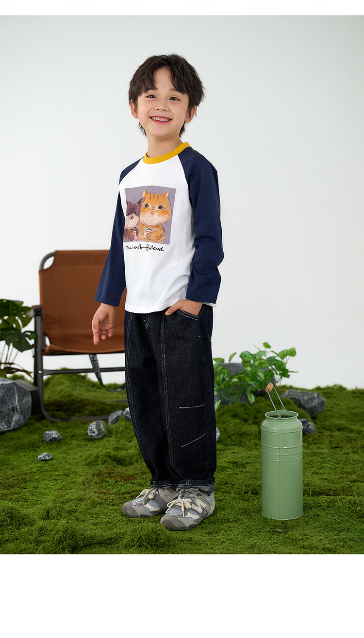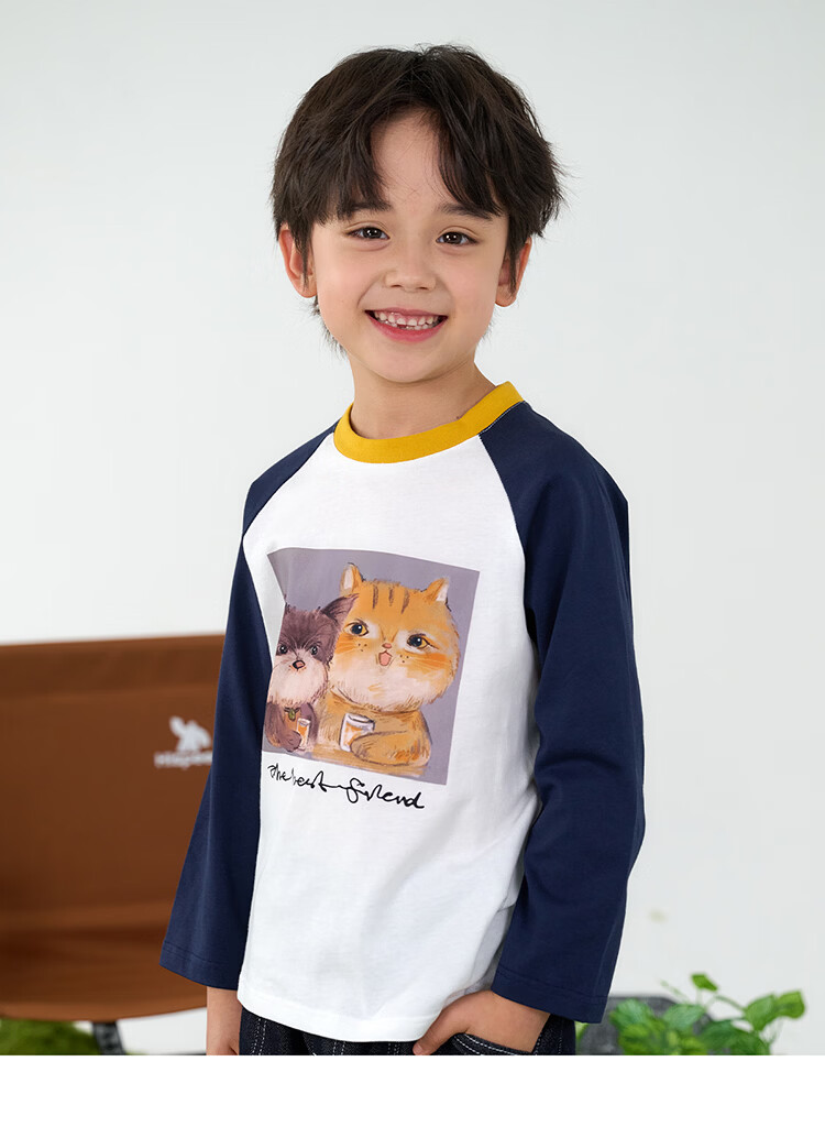 棉花堂(cottontown)【100%棉】棉花堂儿童纯棉长袖T恤春秋宝宝新款女童打底男童童装 藏青 90 90/52