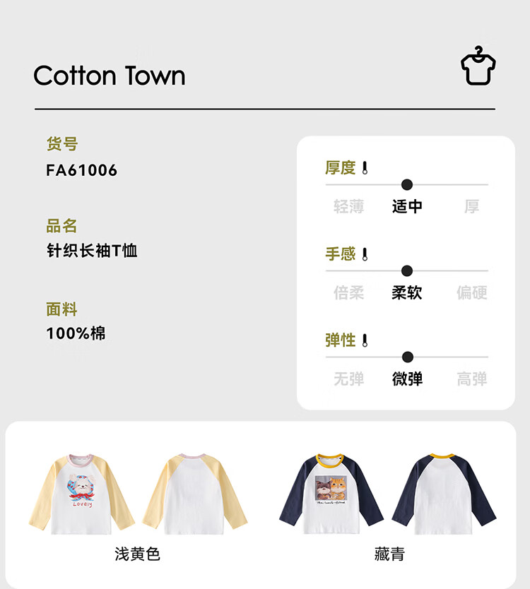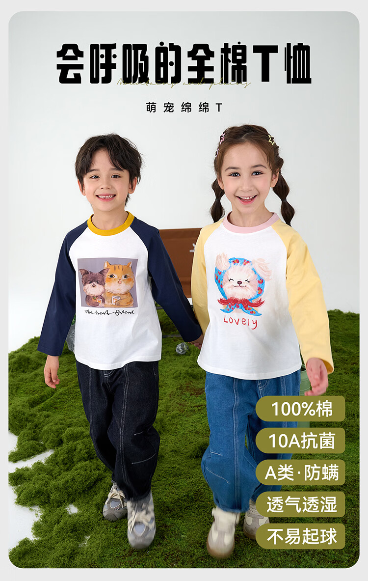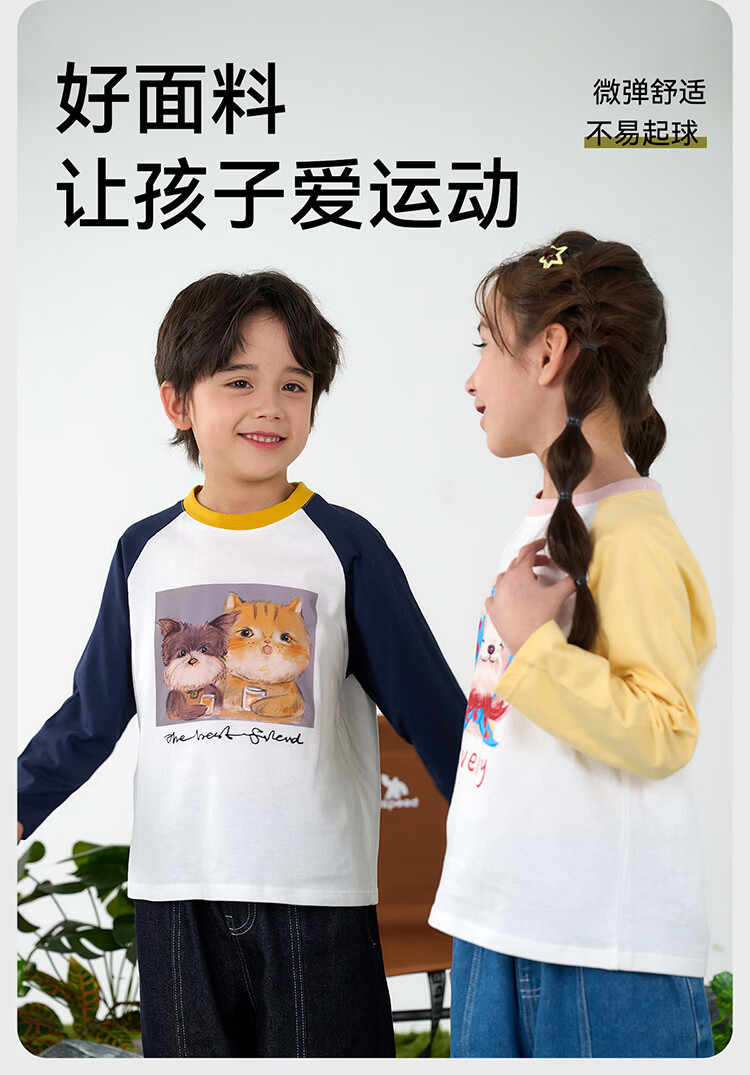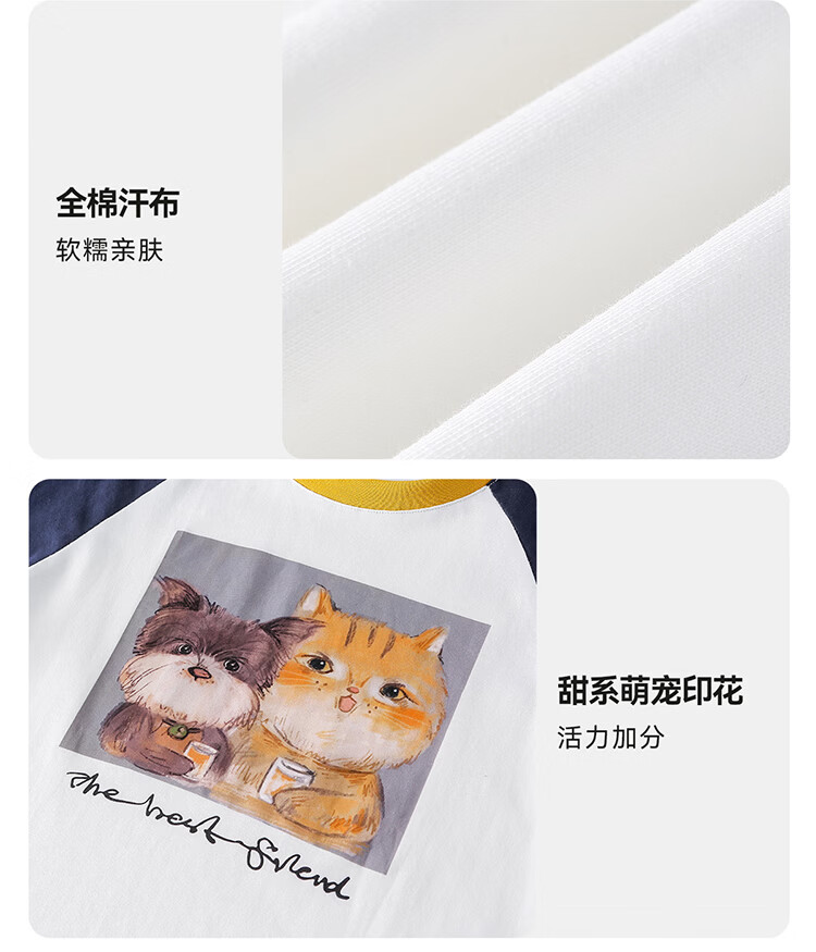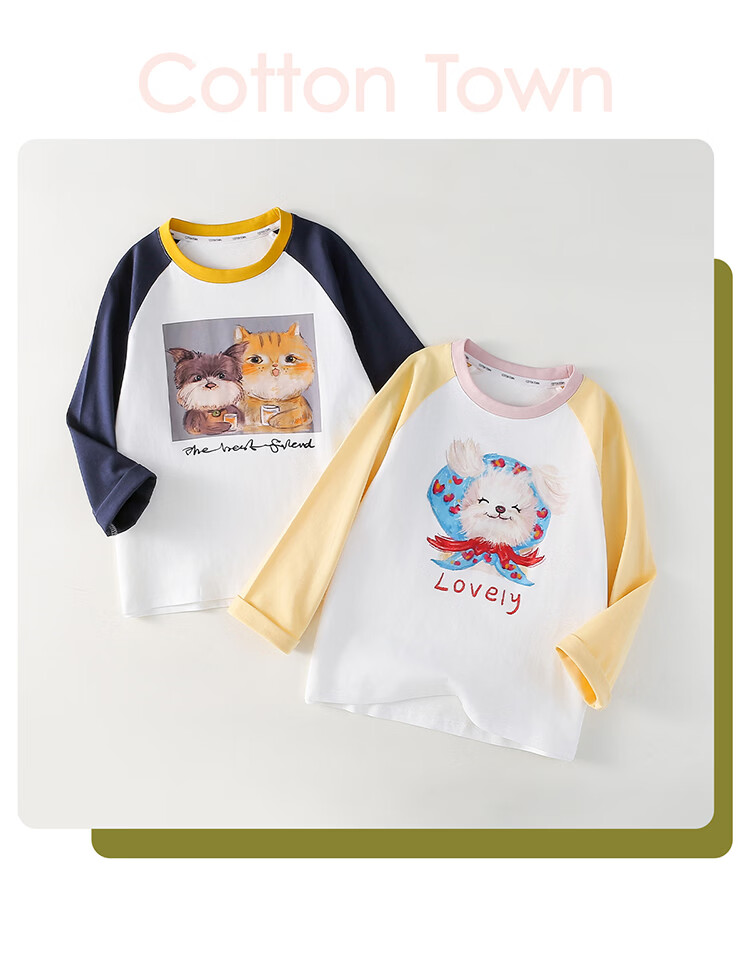 棉花堂(cottontown)【100%棉】棉花堂儿童纯棉长袖T恤春秋宝宝新款女童打底男童童装 藏青 90 90/52
