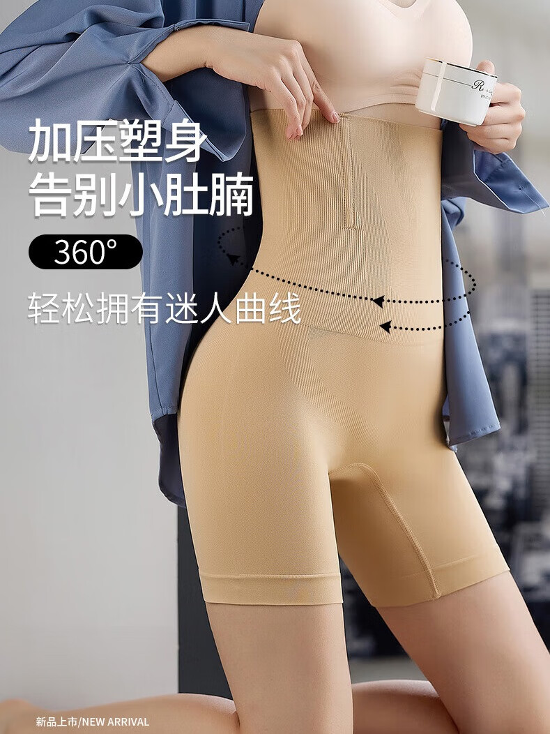 汇美康提臀收腹裤女收小肚子高腰收胃产后塑身裤内裤束腰收腹藏肉神器 肤色 4XL (适合155-170斤)