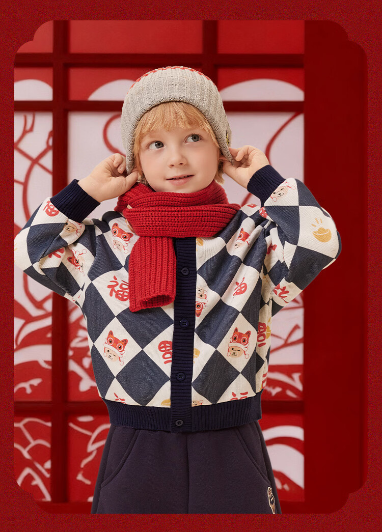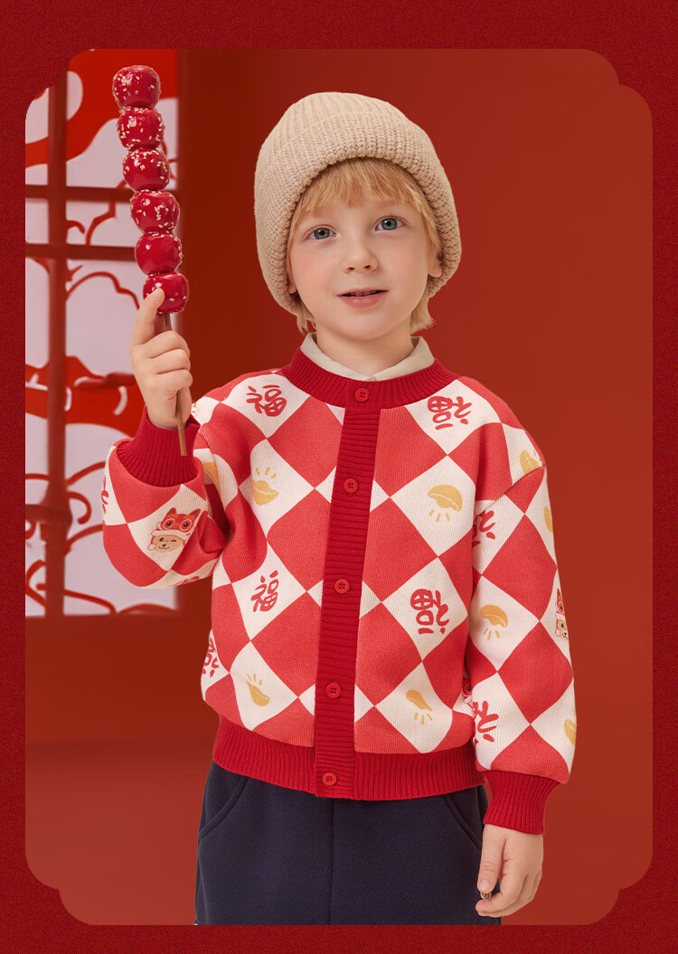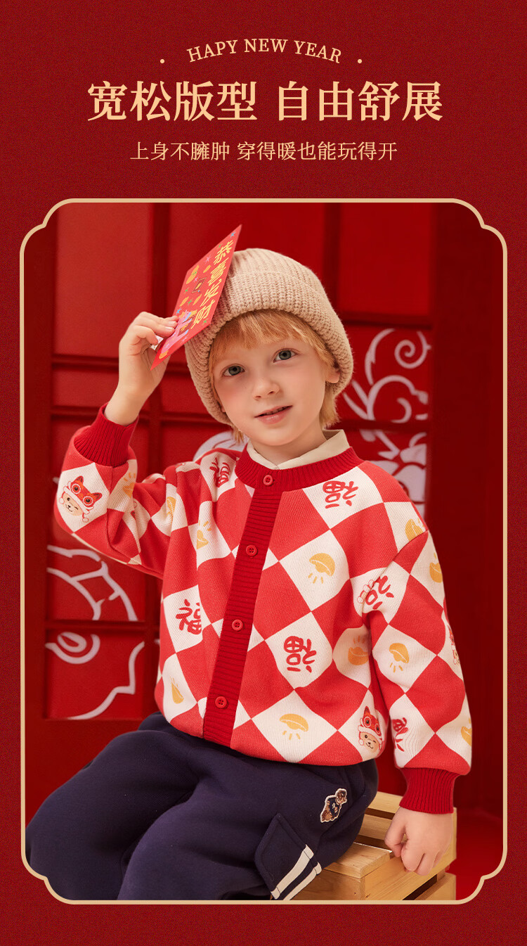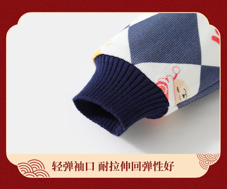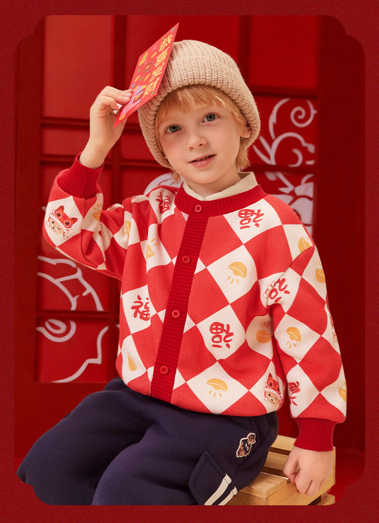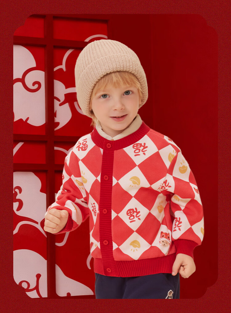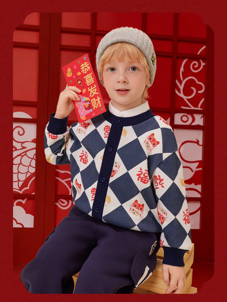 Classic Teddy儿童上衣男童春季开衫红品针织衫毛衣打底衫童装春装红品拜年服 喜庆小熊-深蓝 90