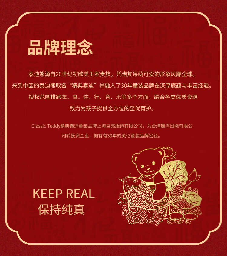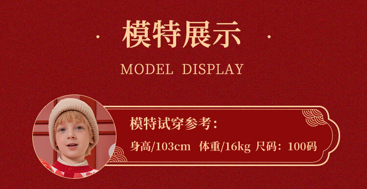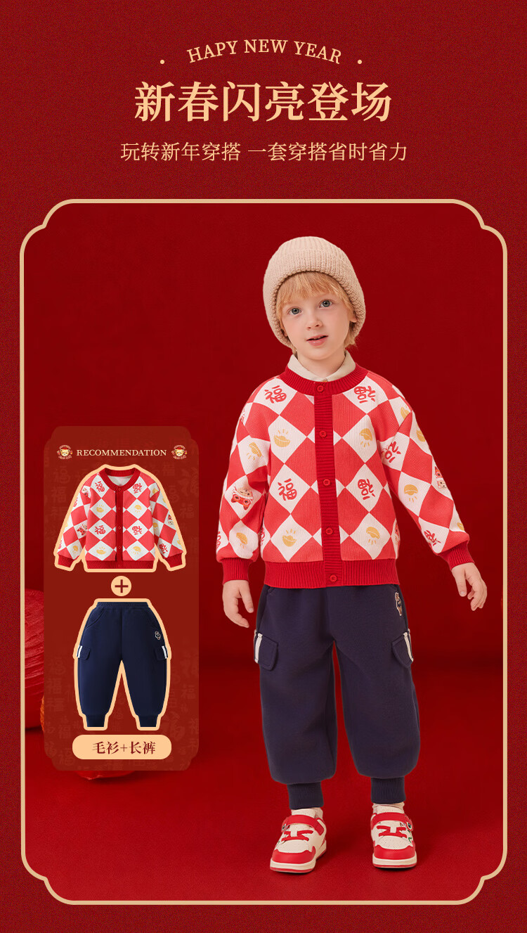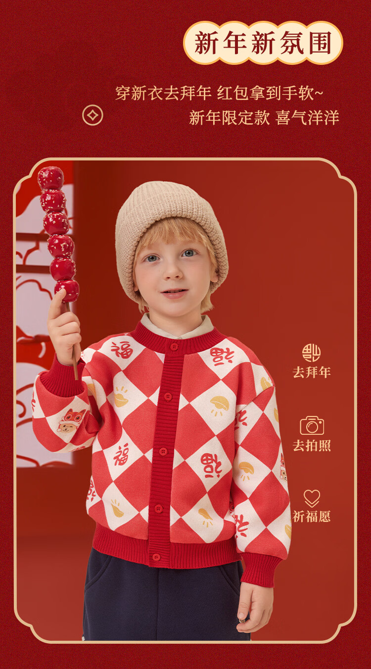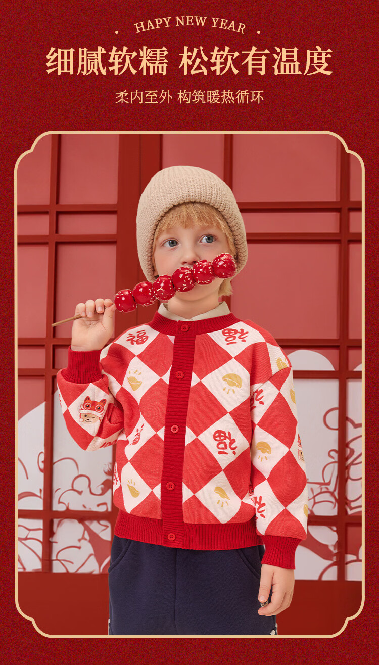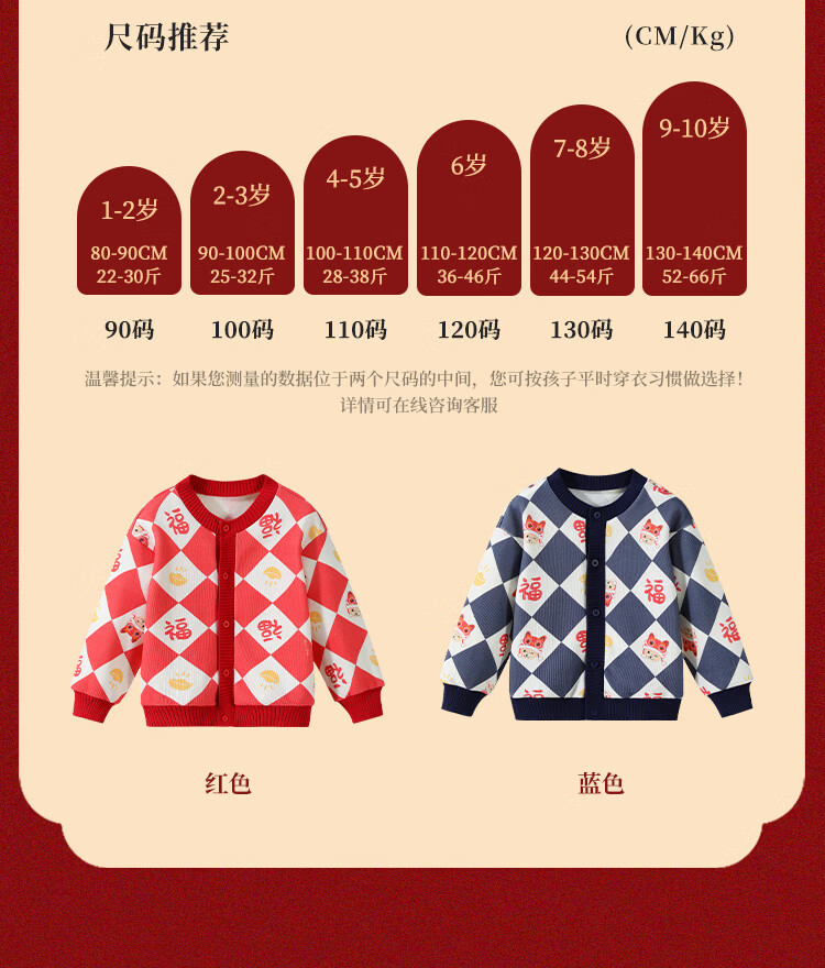 Classic Teddy儿童上衣男童春季开衫红品针织衫毛衣打底衫童装春装红品拜年服 喜庆小熊-深蓝 90