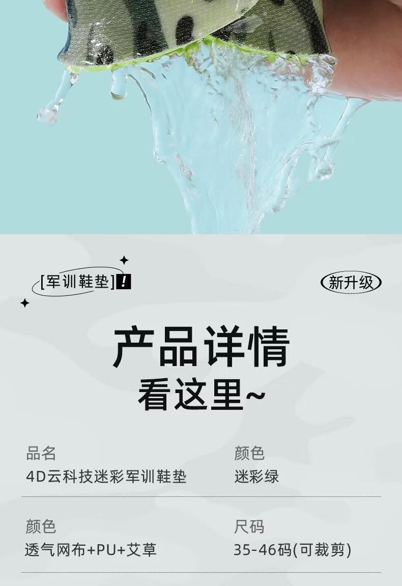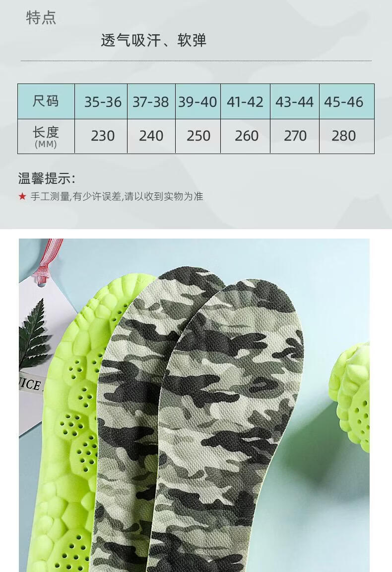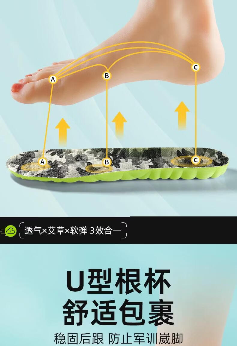 朋意军训专用鞋垫足弓支撑防臭吸汗透气夏季久站防痛柔软舒适超软底 换洗装:军训鞋垫【2双】软弹缓压 40