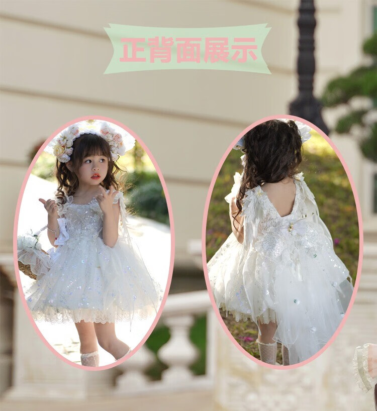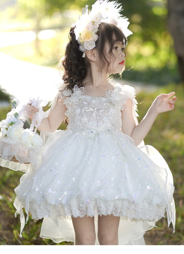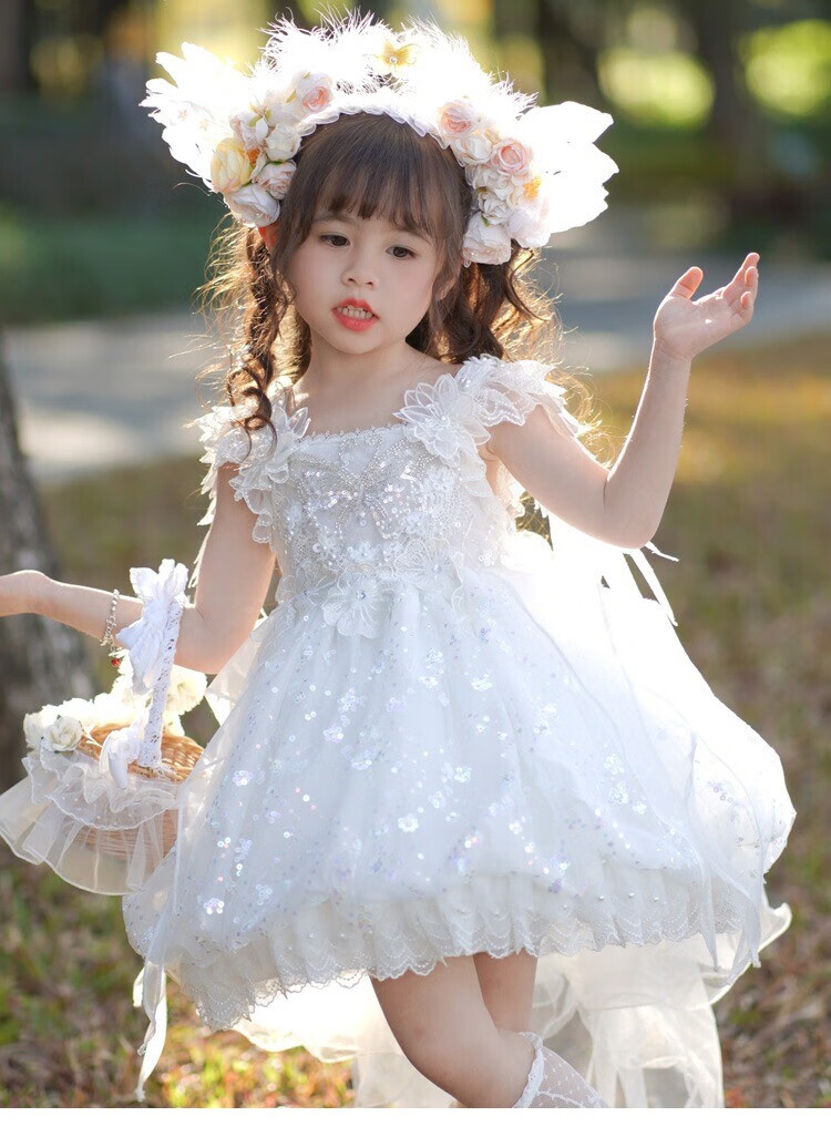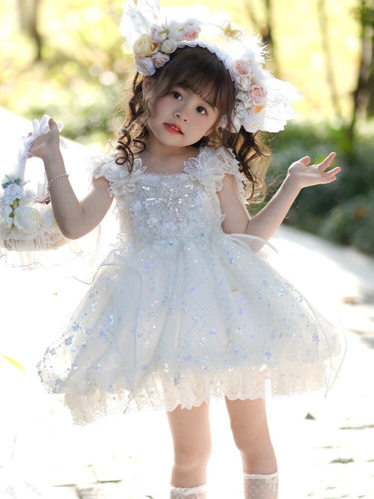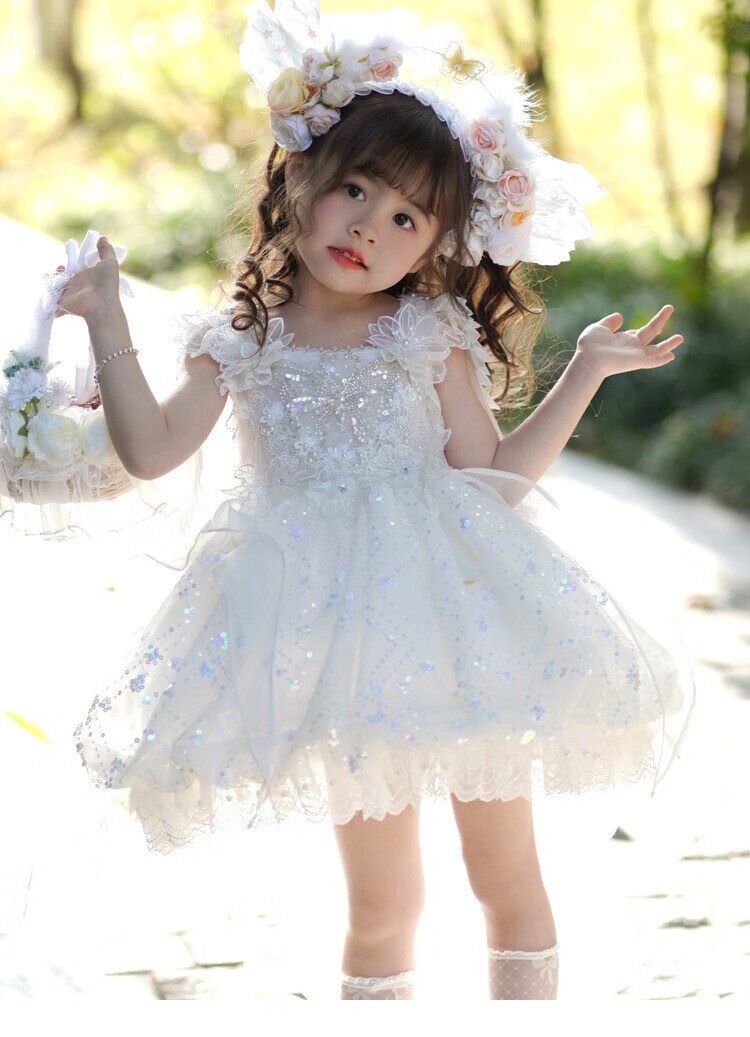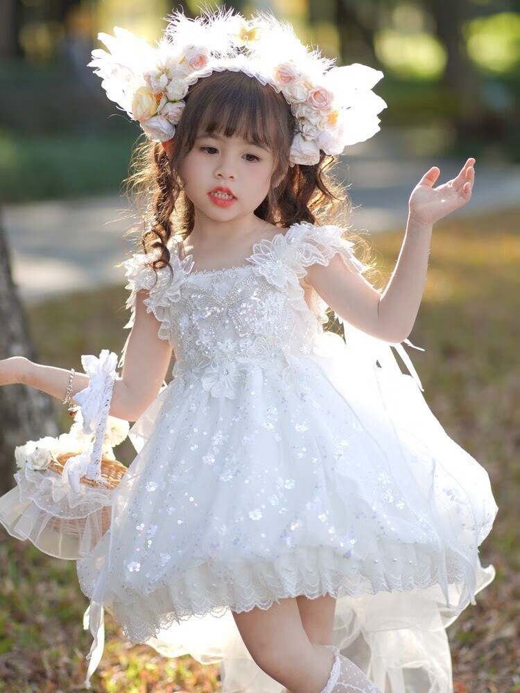 G.duck公主裙女童连衣裙白色洛丽塔儿童礼服生日蕾丝钢琴演出服蓬蓬裙子 白色 100 (建议身高90cm 3-4岁)cm