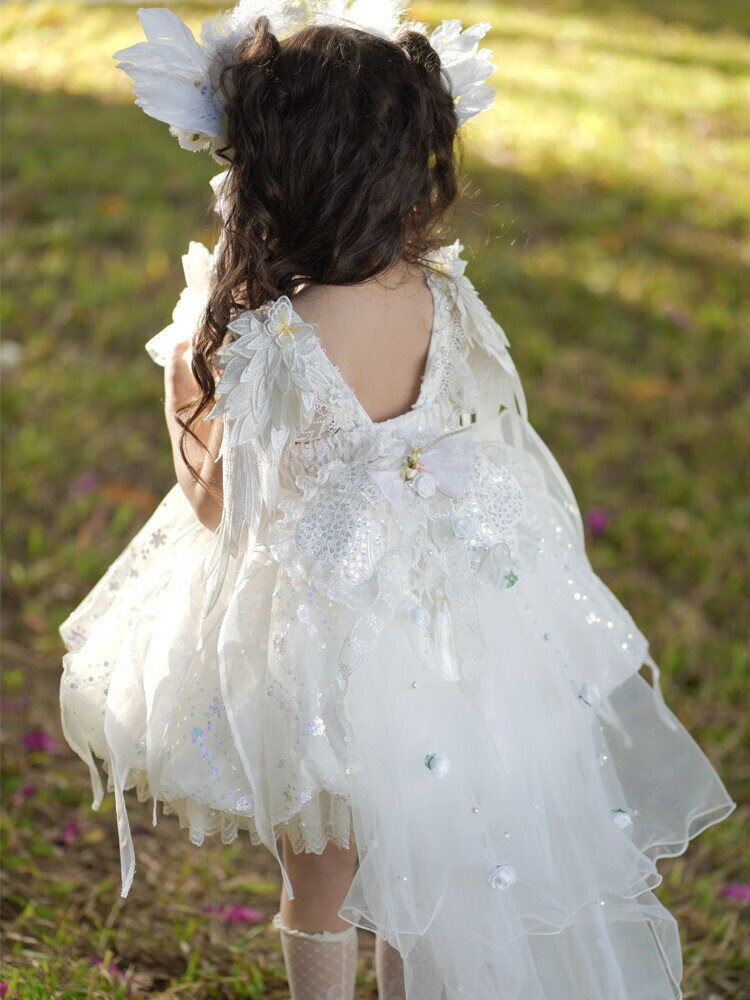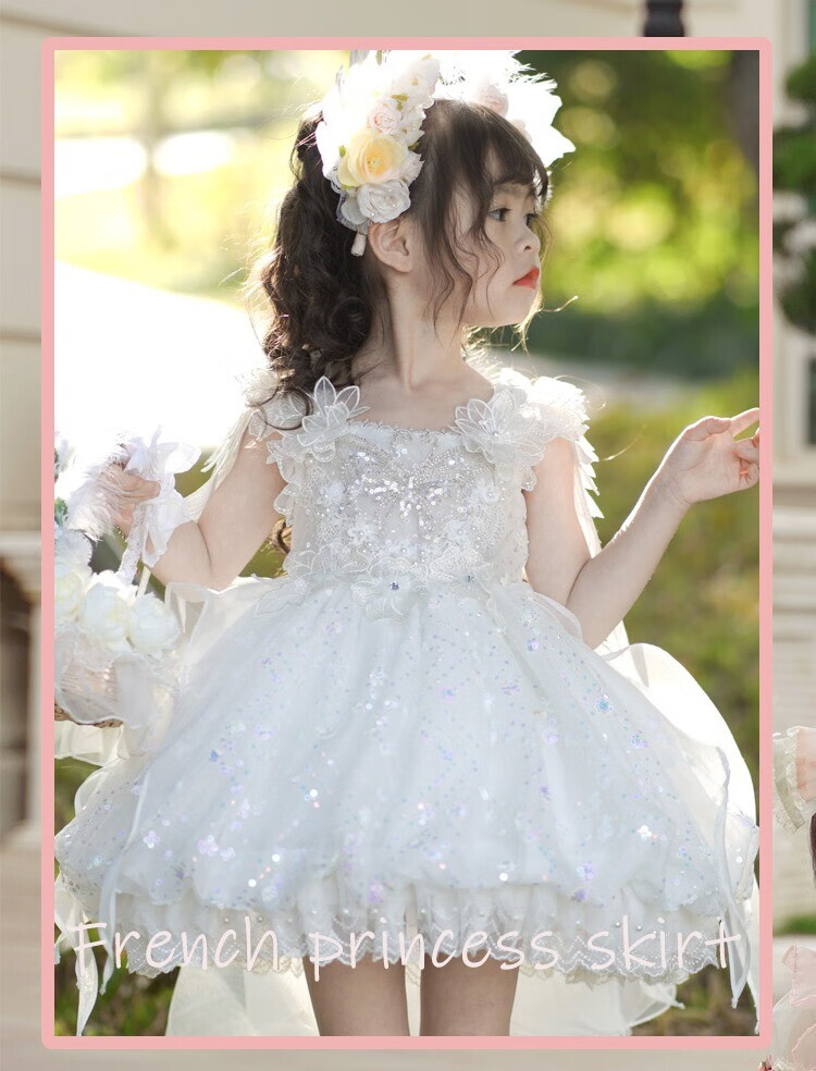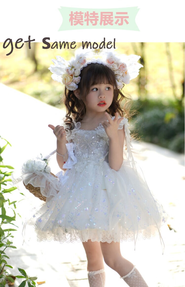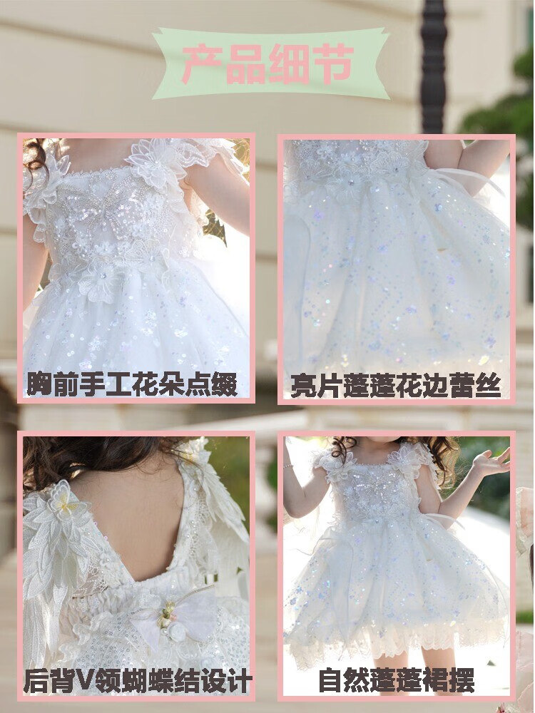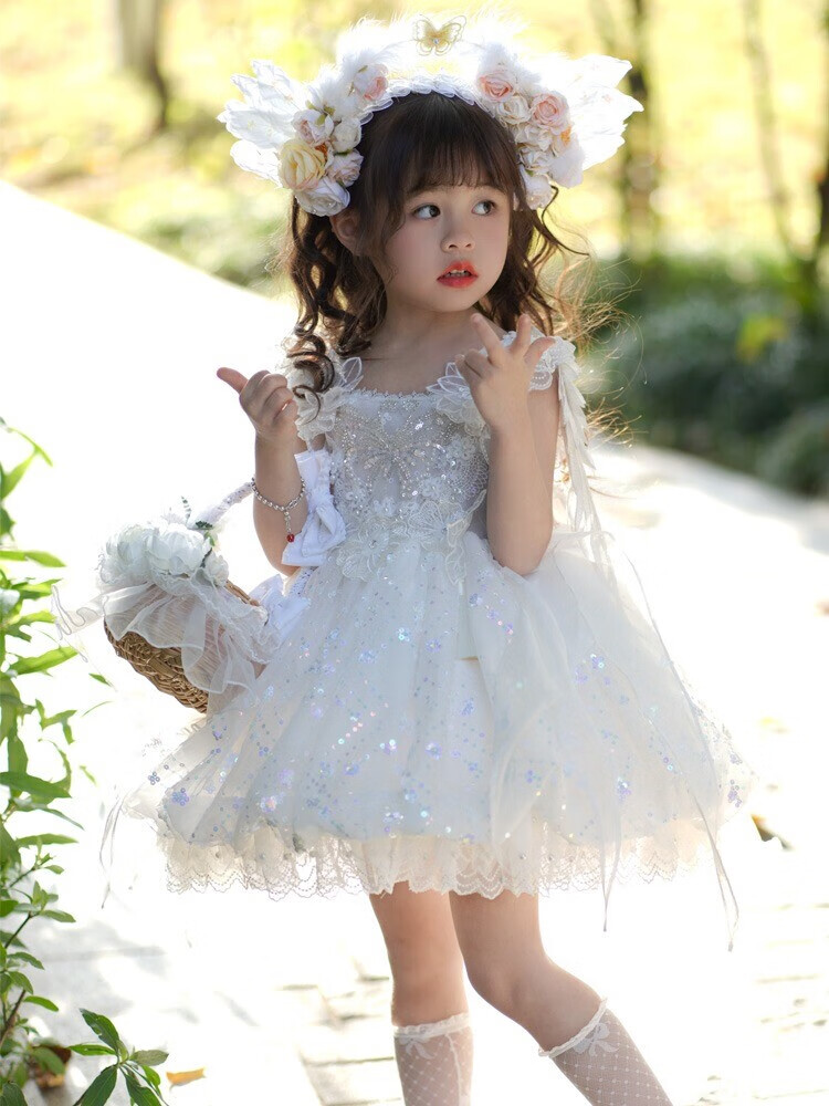G.duck公主裙女童连衣裙白色洛丽塔儿童礼服生日蕾丝钢琴演出服蓬蓬裙子 白色 100 (建议身高90cm 3-4岁)cm