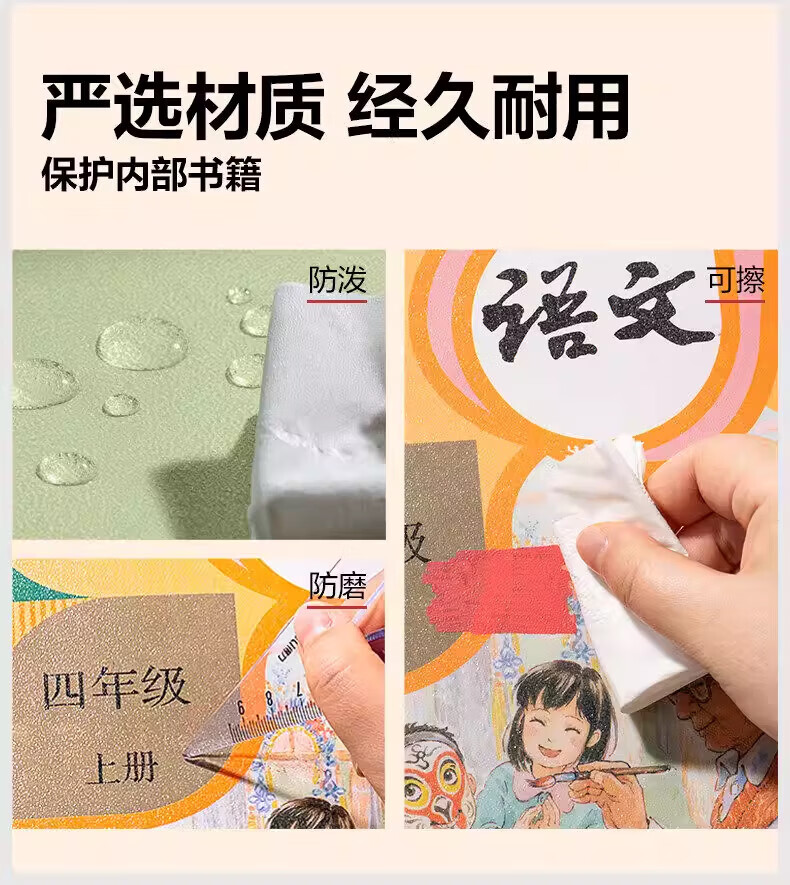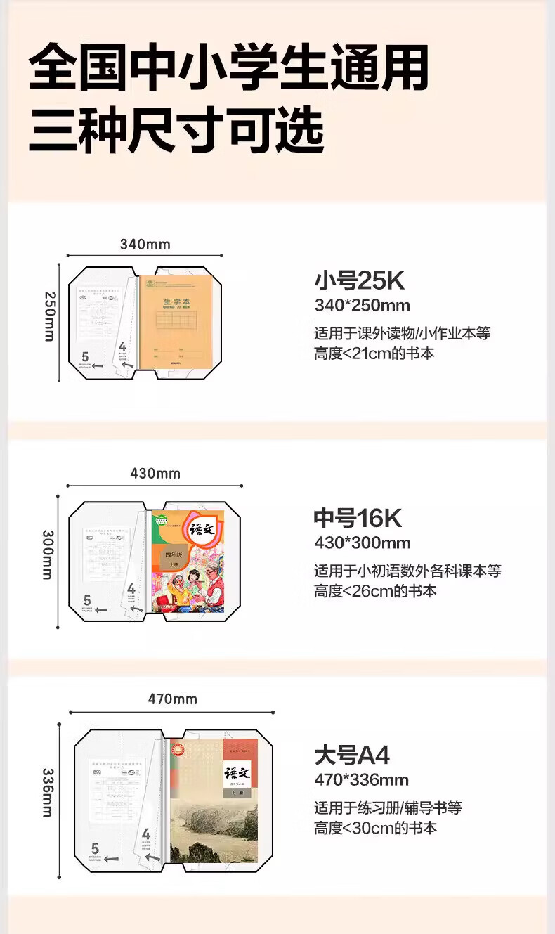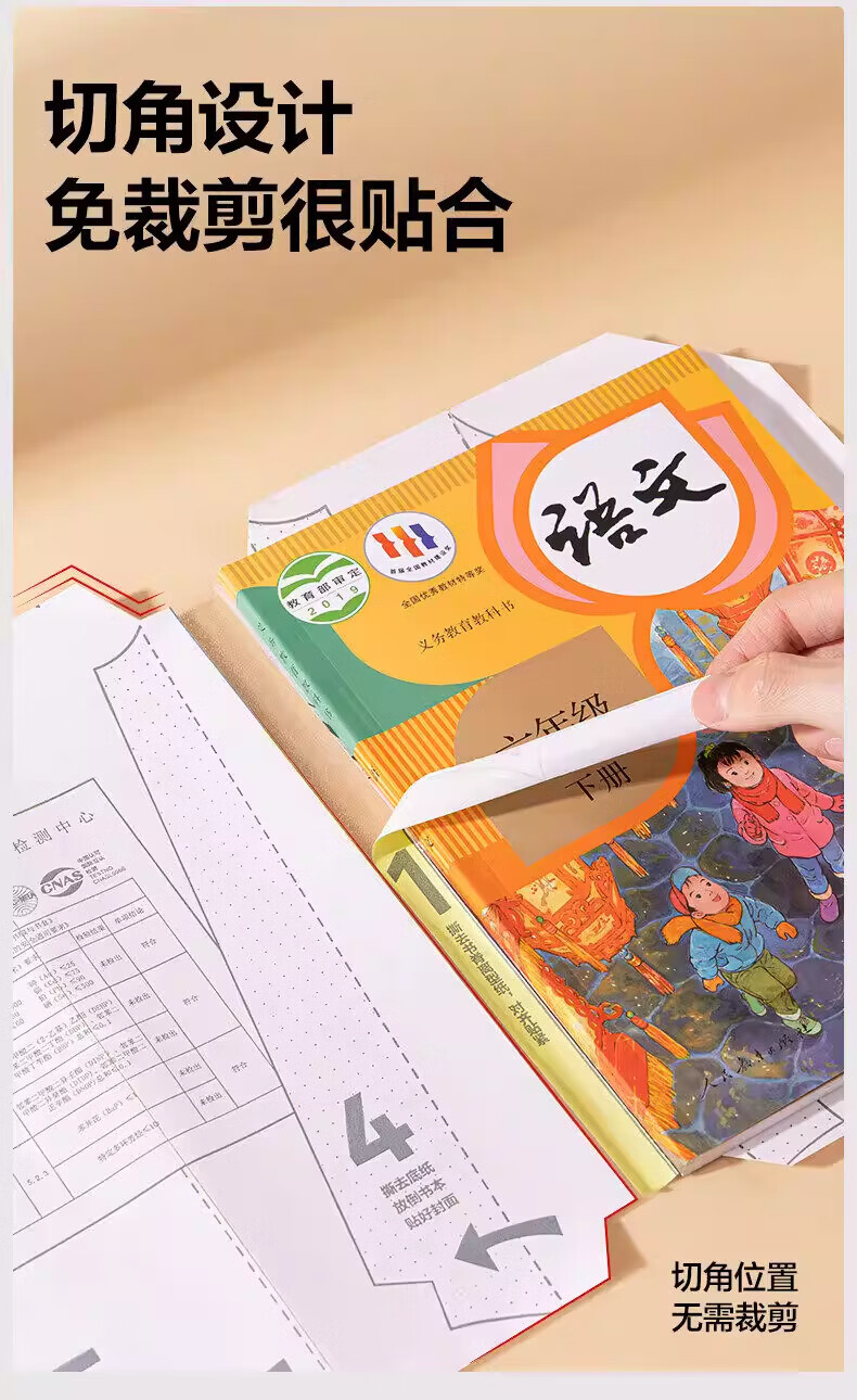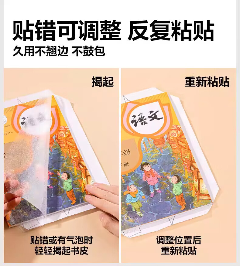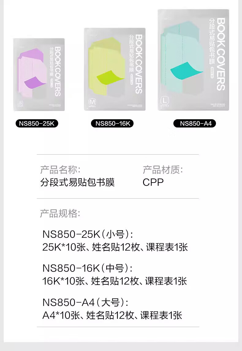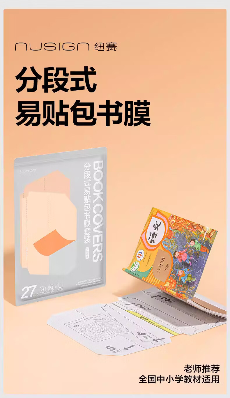 纽赛(NUSIGN)分段式包书皮自粘透明包书膜小学生专用16k书衣书皮保护套一二年级A4书套课本本子皮全套 全套27张+内页防卷边贴100枚