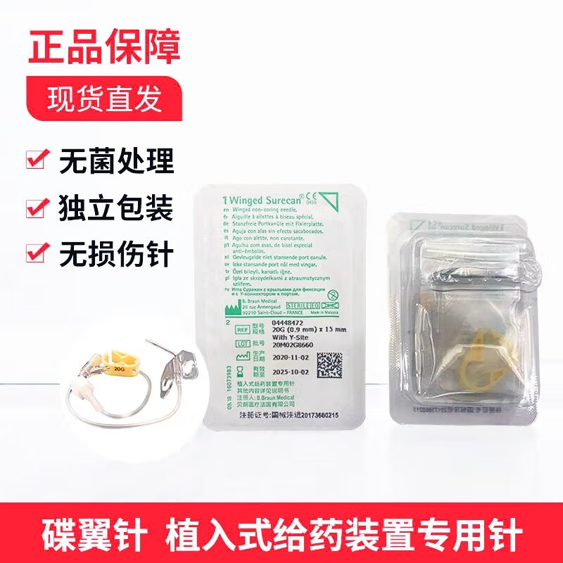 贝朗德国贝朗植入式输液港专用针蝶翼针20G输注液无损伤22G儿童用港针 22G (8375儿童型)0.7mm*12mm五个