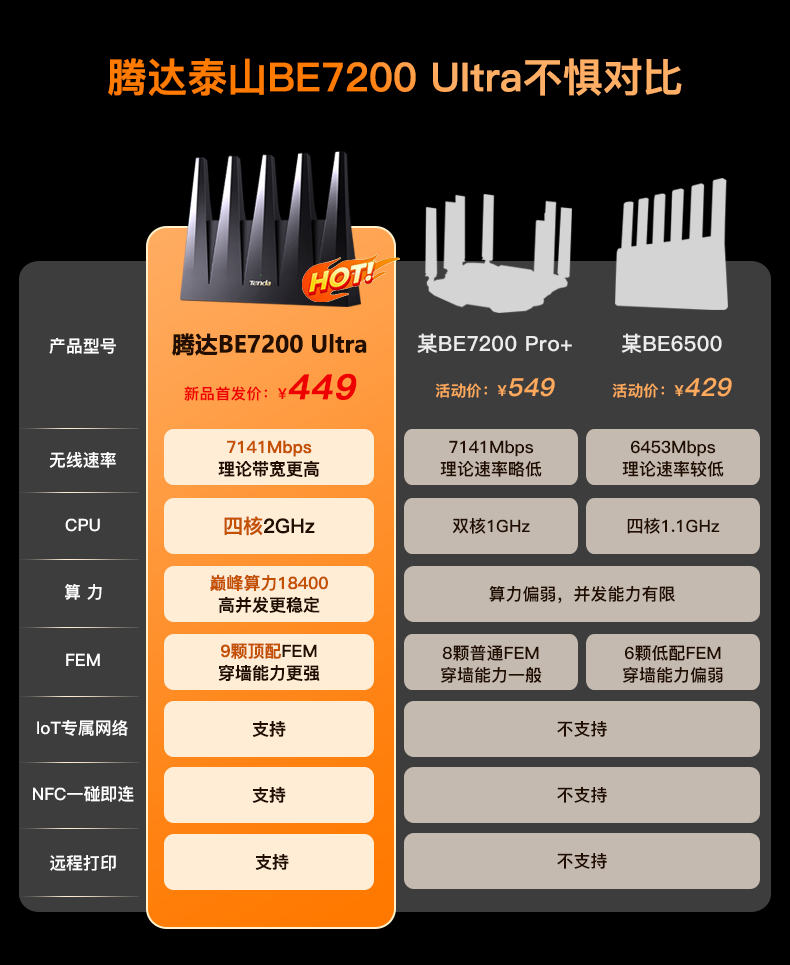 Tenda腾达路由器WiFi7【泰山BE7200 Ultra】千兆穿墙王信号增强无线家用电竞放大器立式BE12 Pro
