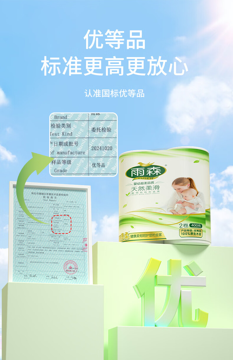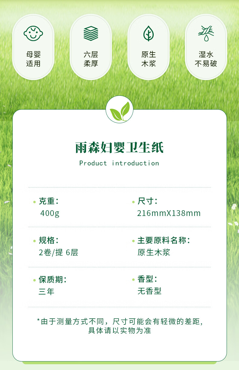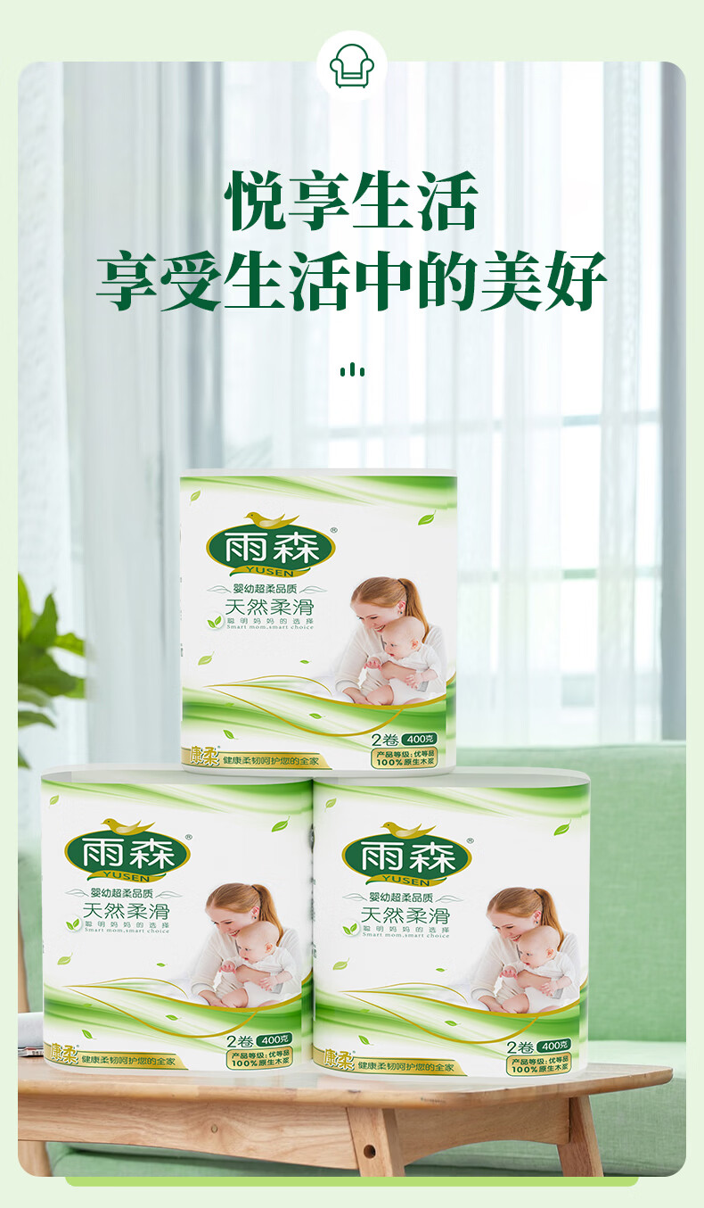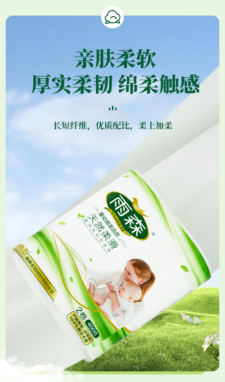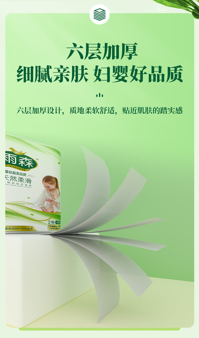 雨森妇婴卷纸6层加厚湿水不易破纸巾100%原生木浆无芯卷纸母婴适用 6层 200g/卷*2卷 5提