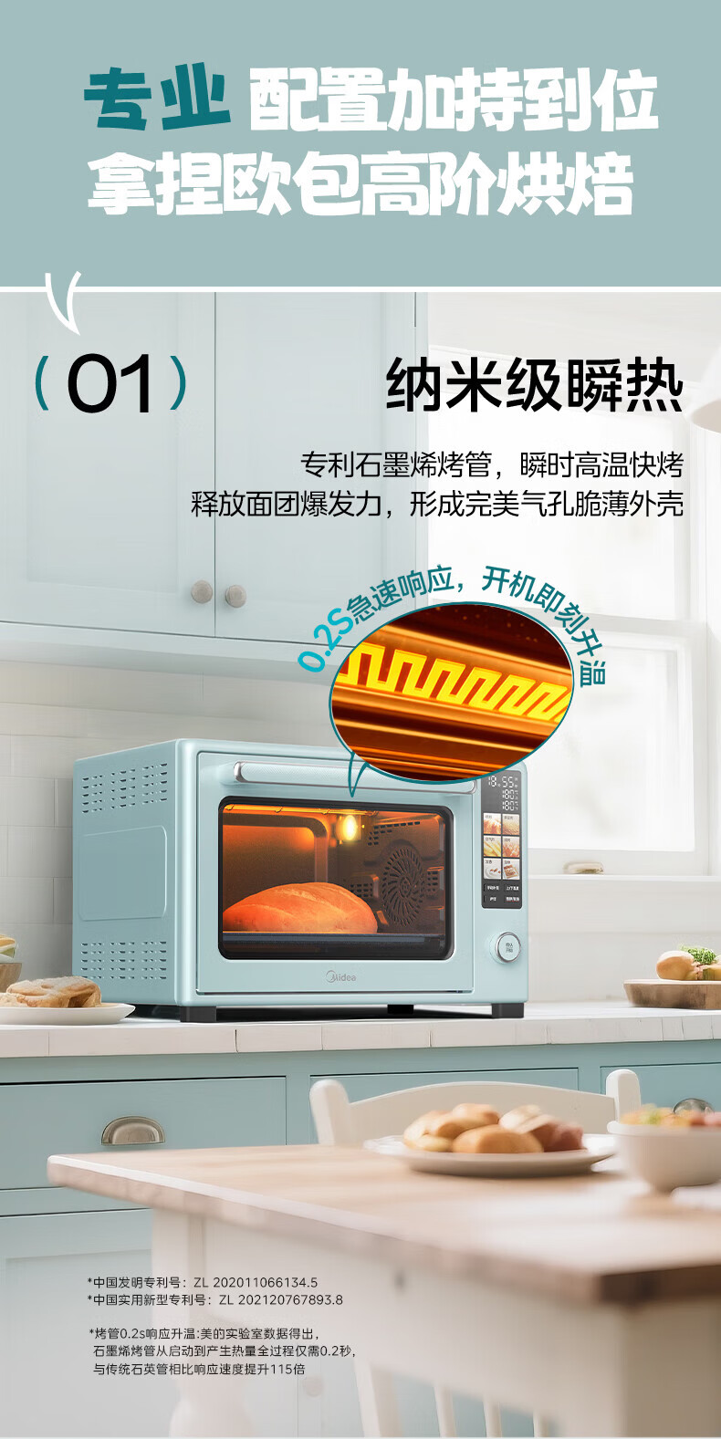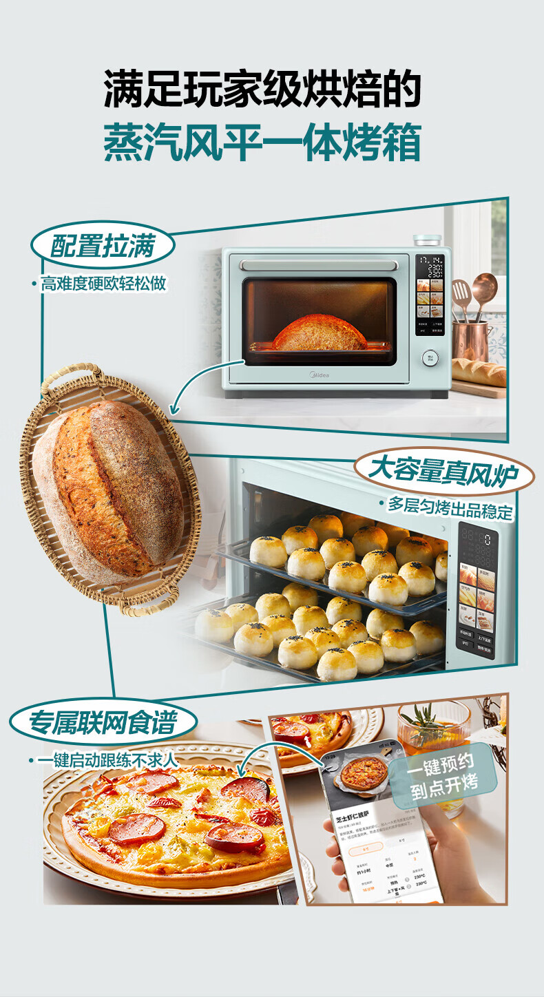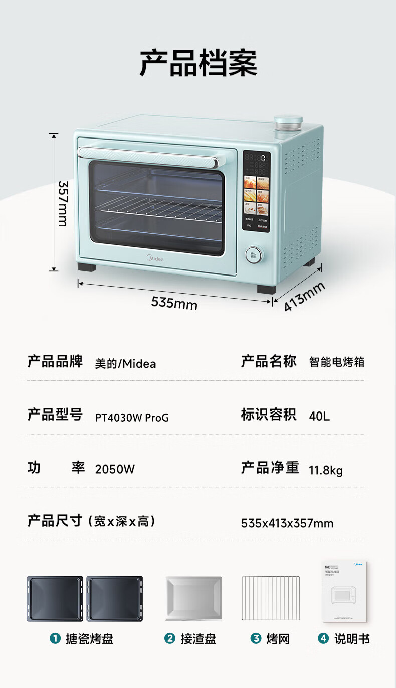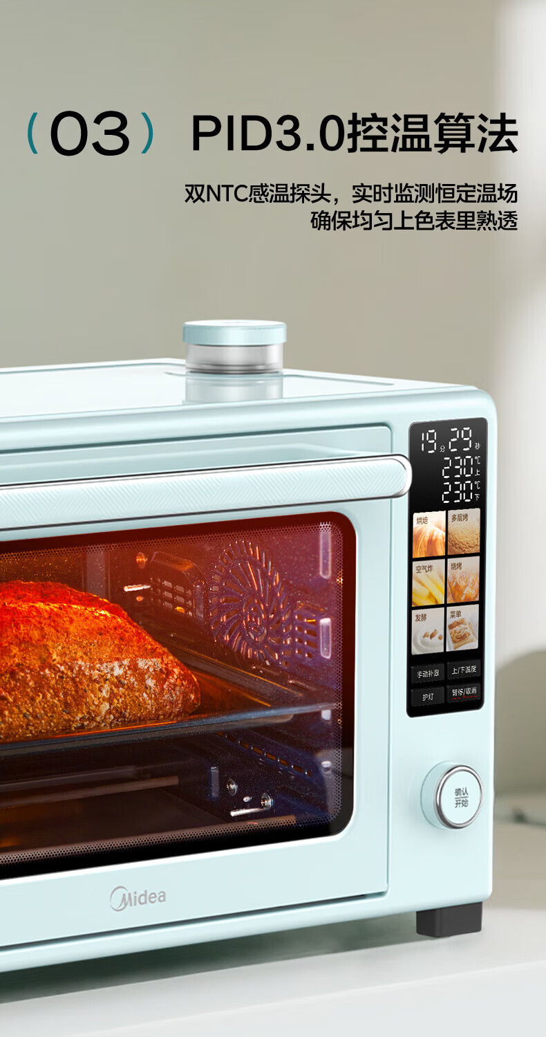 美的(Midea)电烤箱空气炸锅一体机 风炉平炉二合一 家用40升大容量 毫秒级瞬热石墨烯烧烤管 双层独立控温 40L P40PROG