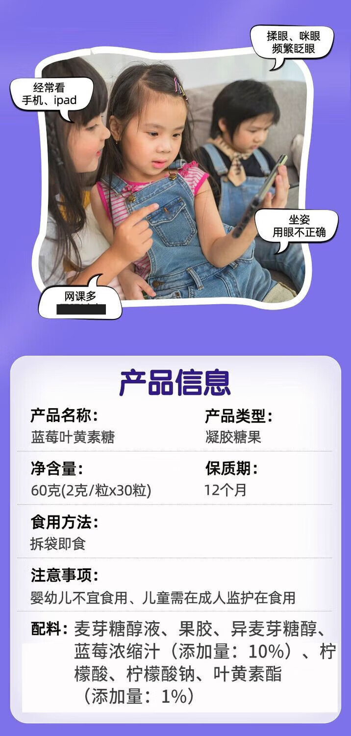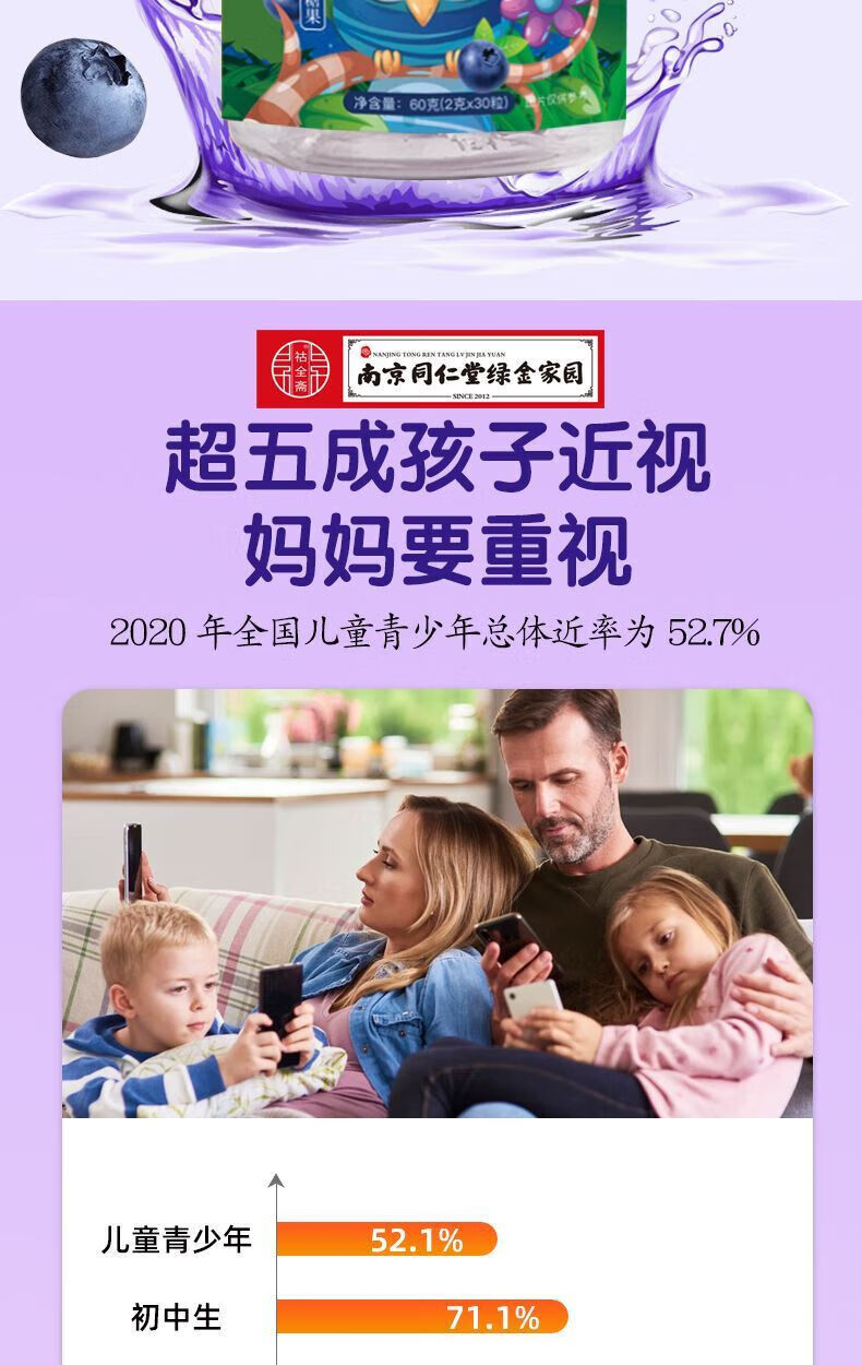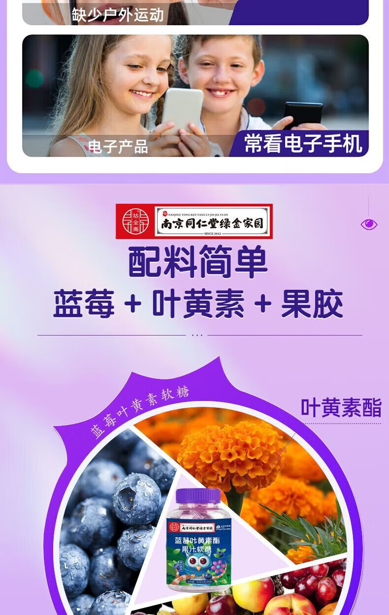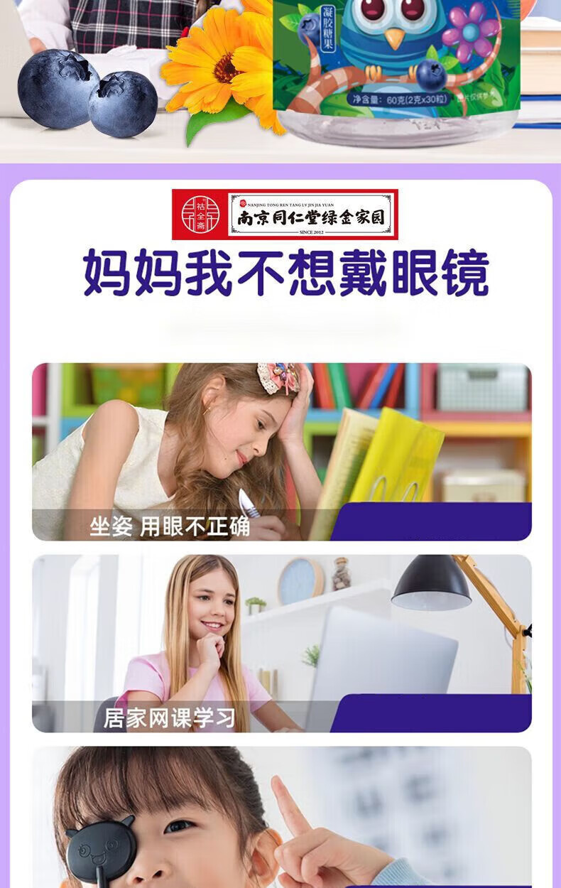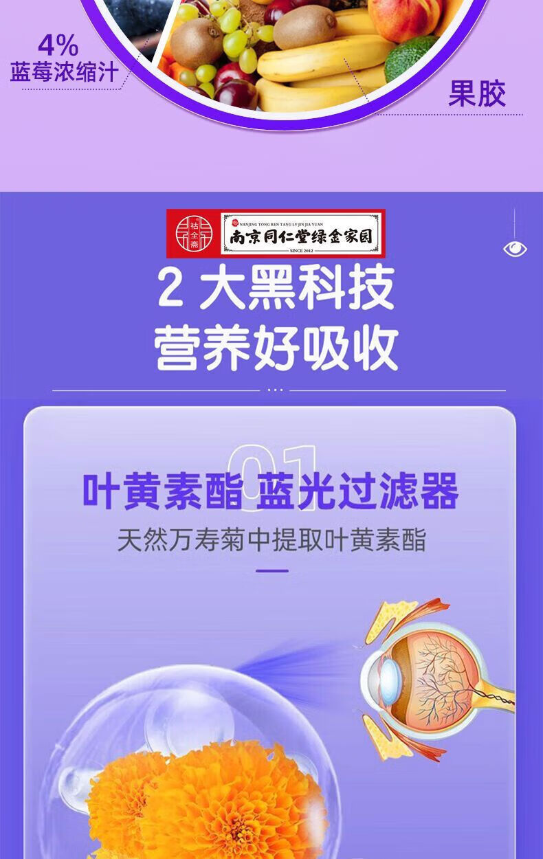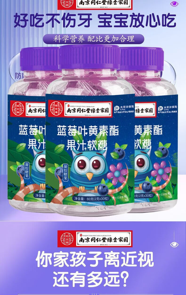 南京同仁堂蓝莓叶黄素软糖 60g*8瓶