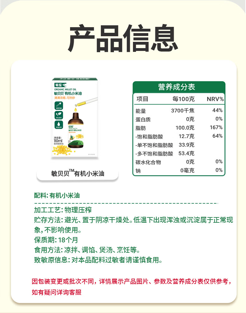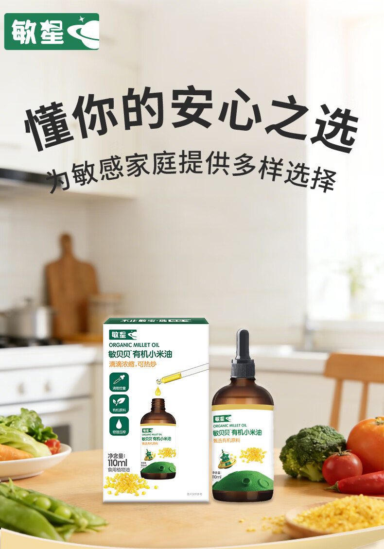 敏星有机小米油营养食用油低温冷榨凉拌热炒油调味送敏宝婴儿童辅食谱 有机小米油110ml*1瓶