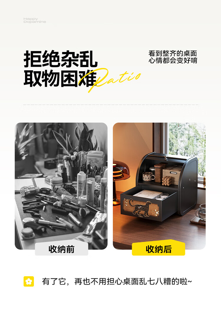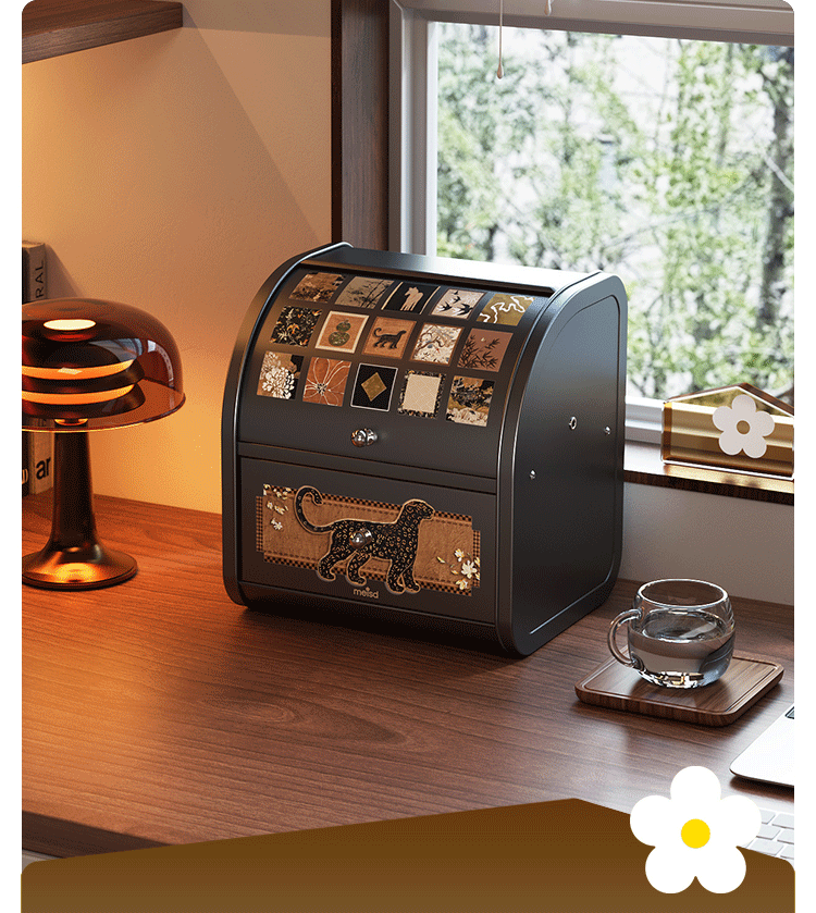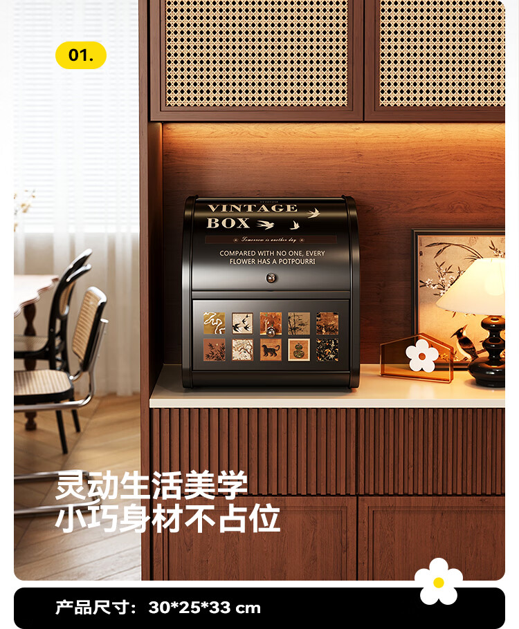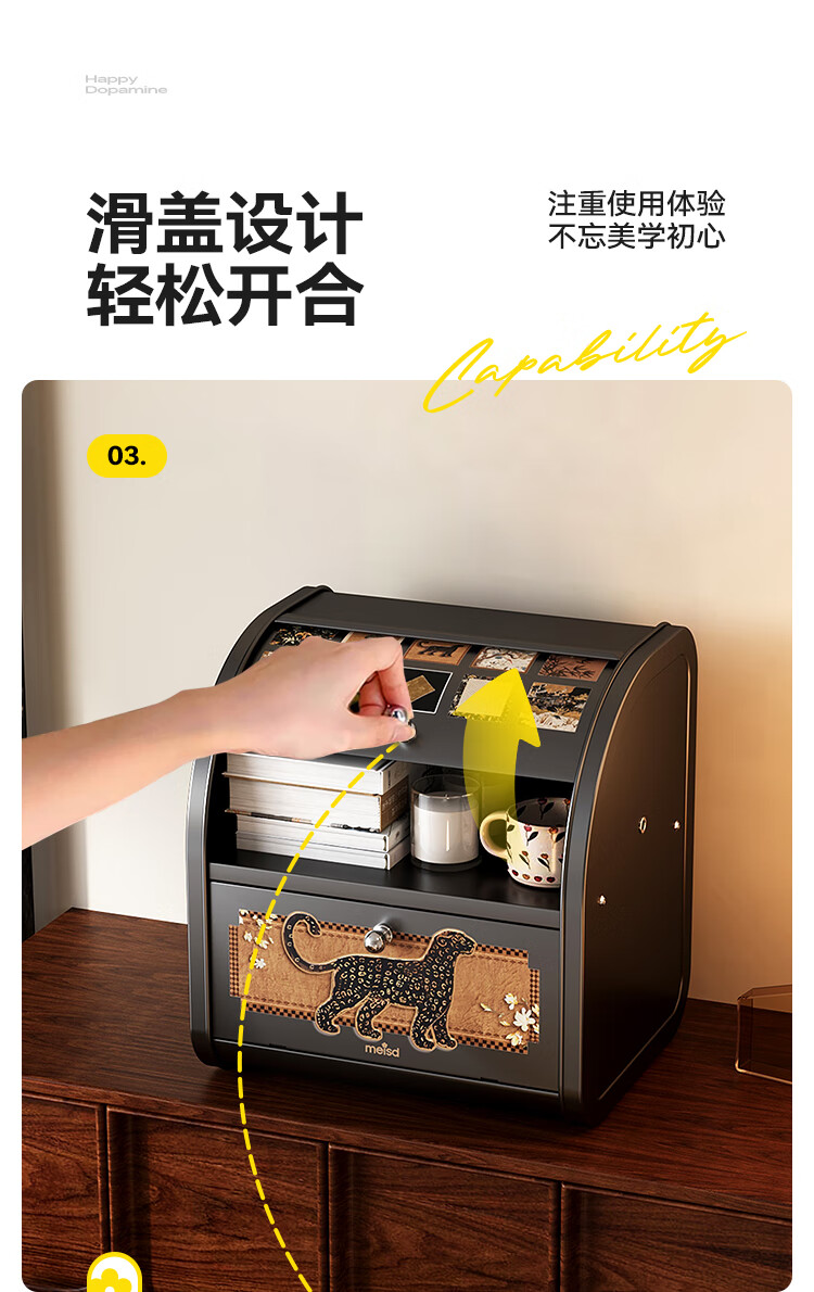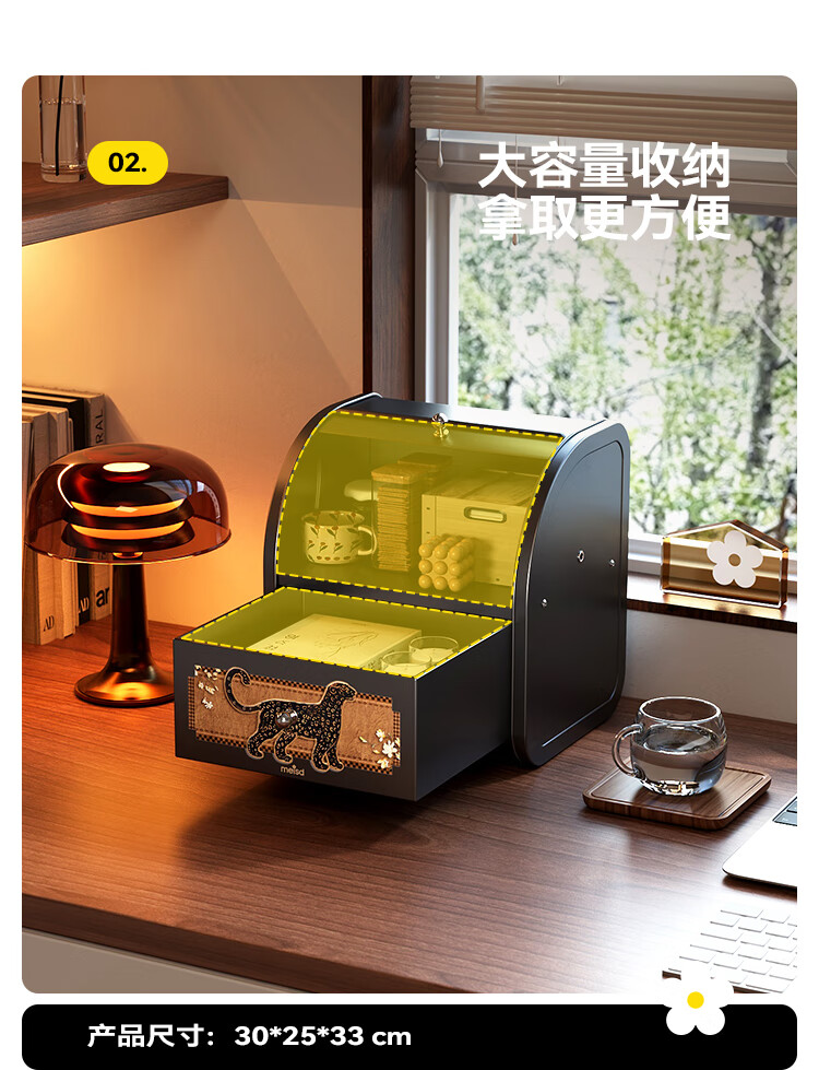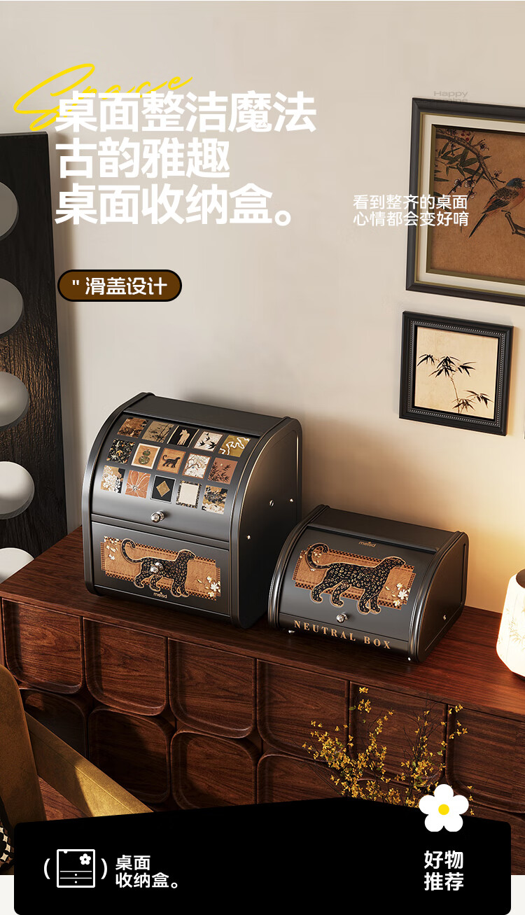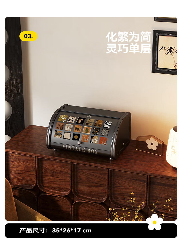 美世达(MEISD)中古风桌面收纳盒抽屉式化妆品梳妆台置物架首饰盒家用玄关收纳箱