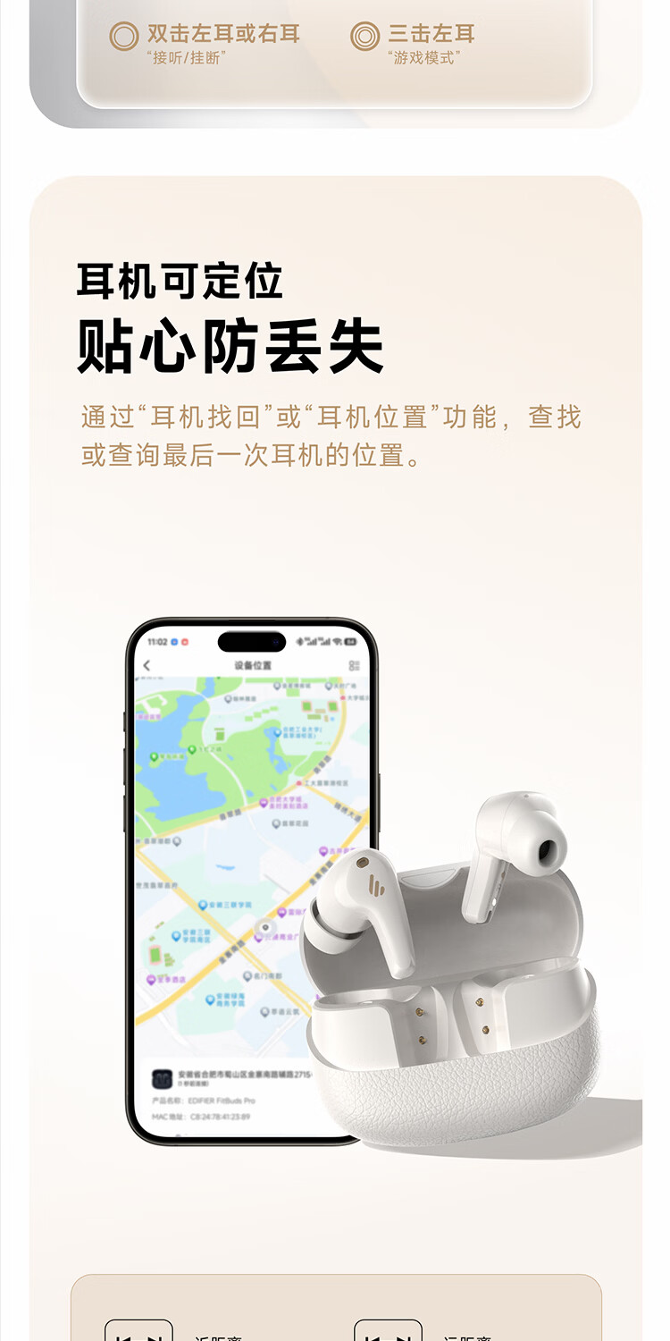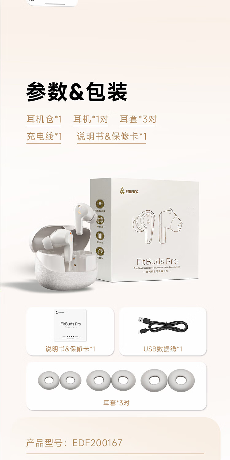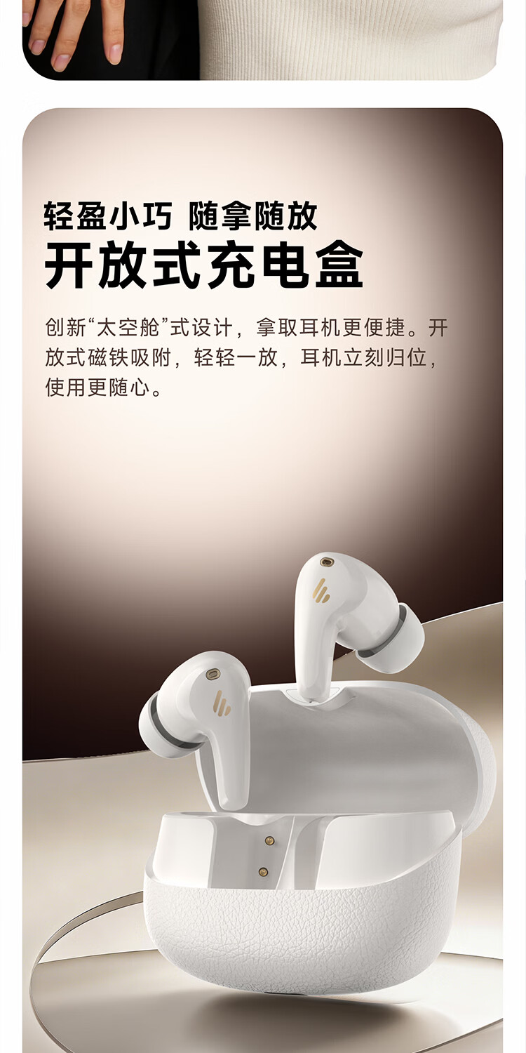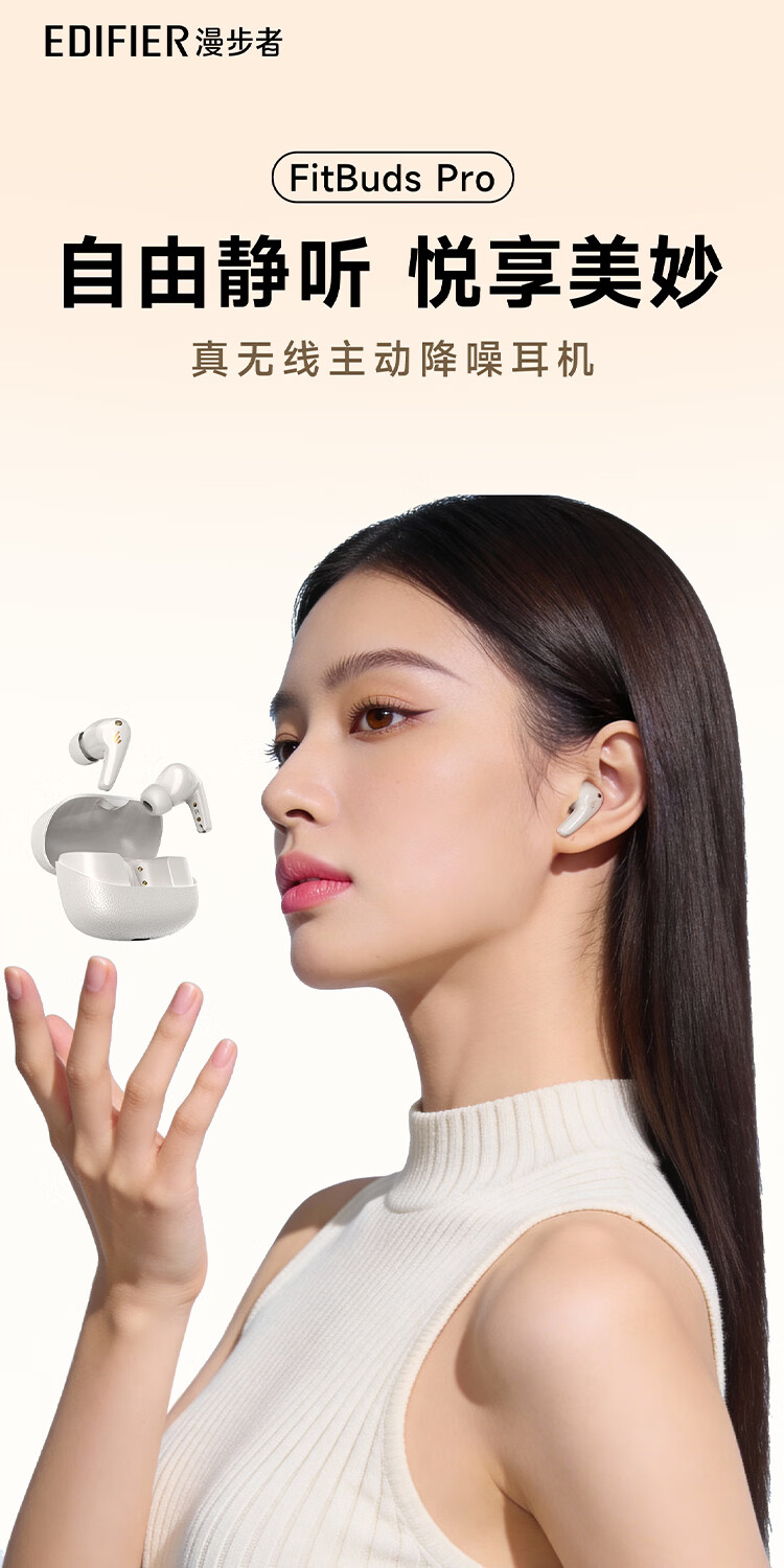 漫步者(EDIFIER)FitBuds Pro真无线主动降噪蓝牙耳机太空舱入耳式低延迟轻奢学生音乐游戏运动礼物适配于苹果华为 【皮革纹理设计】晨曦白+收纳袋