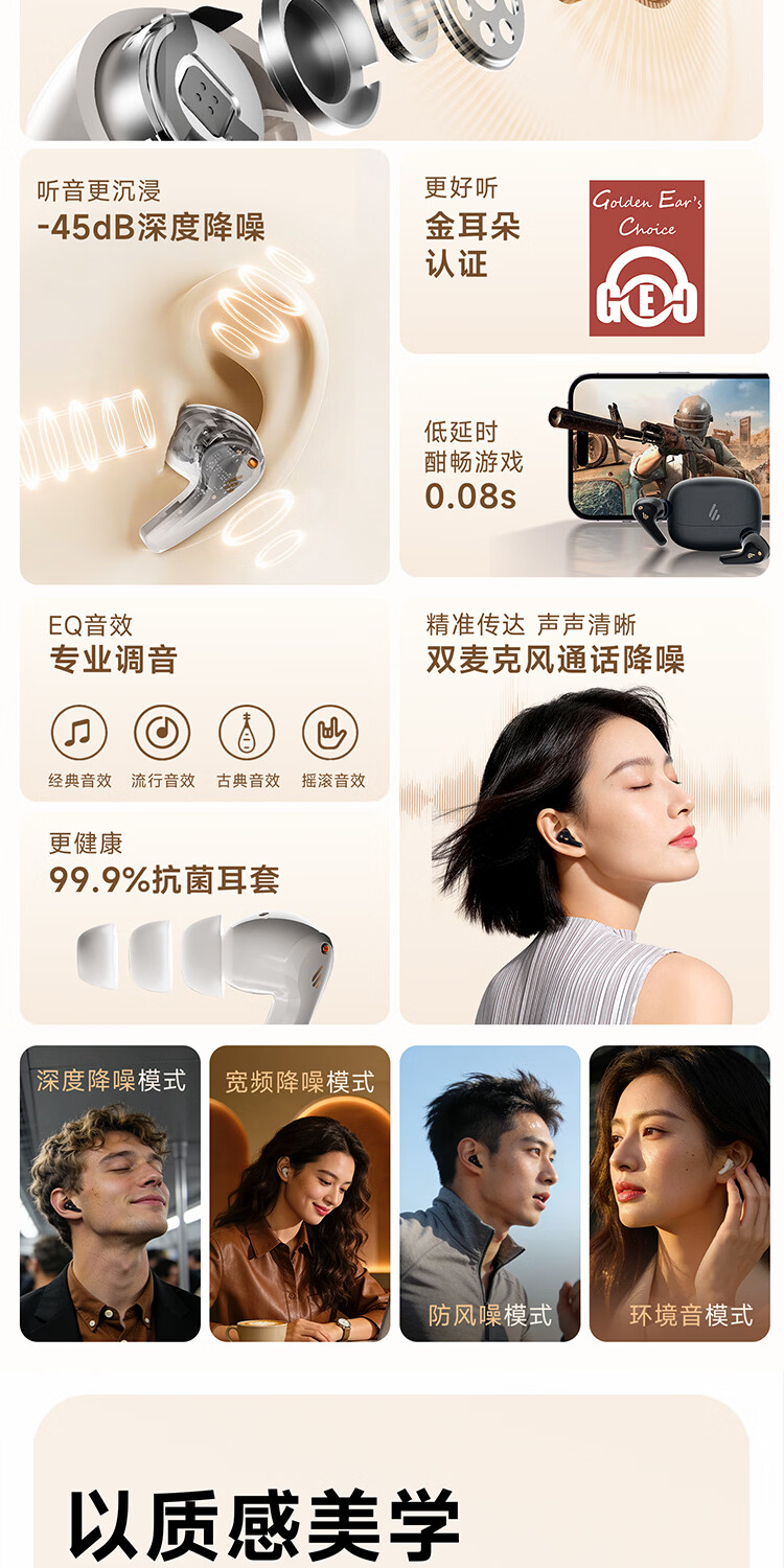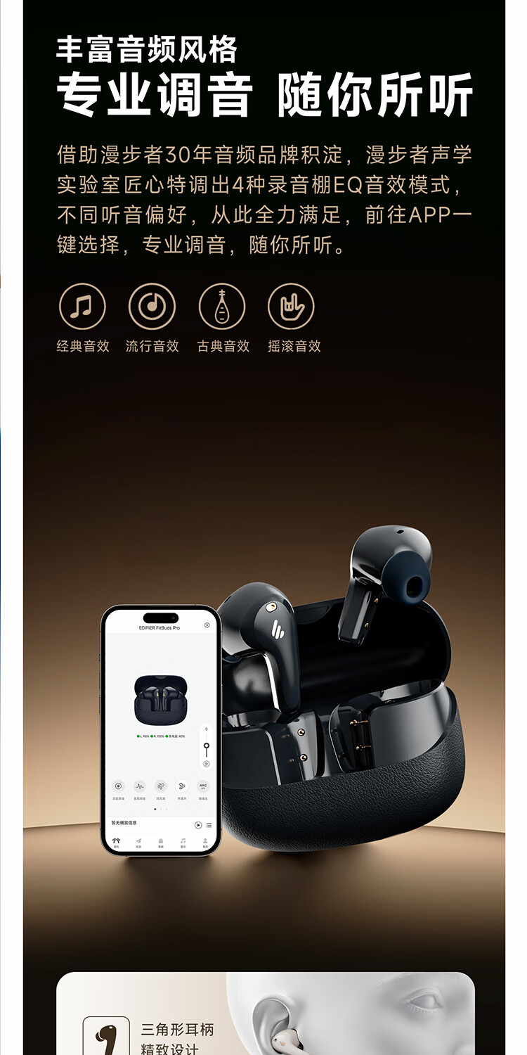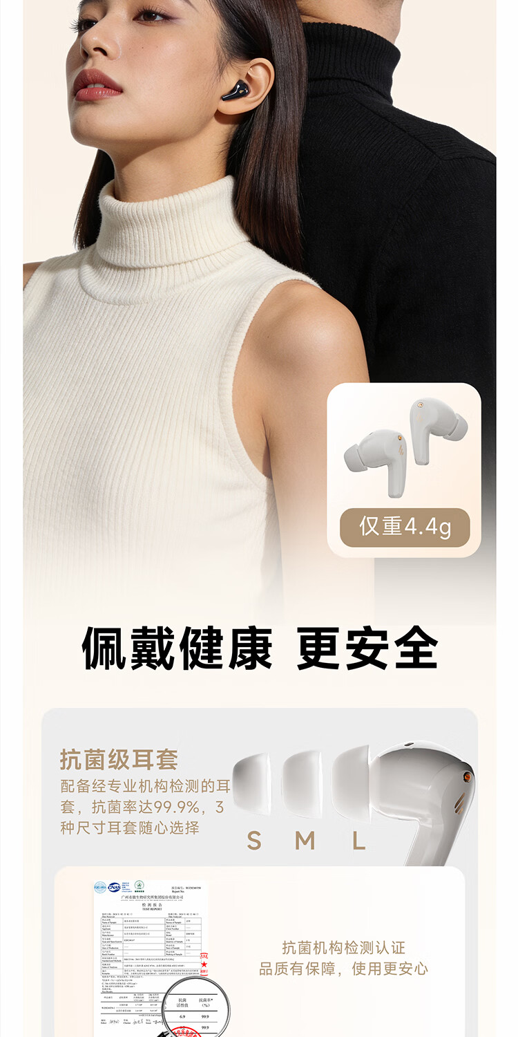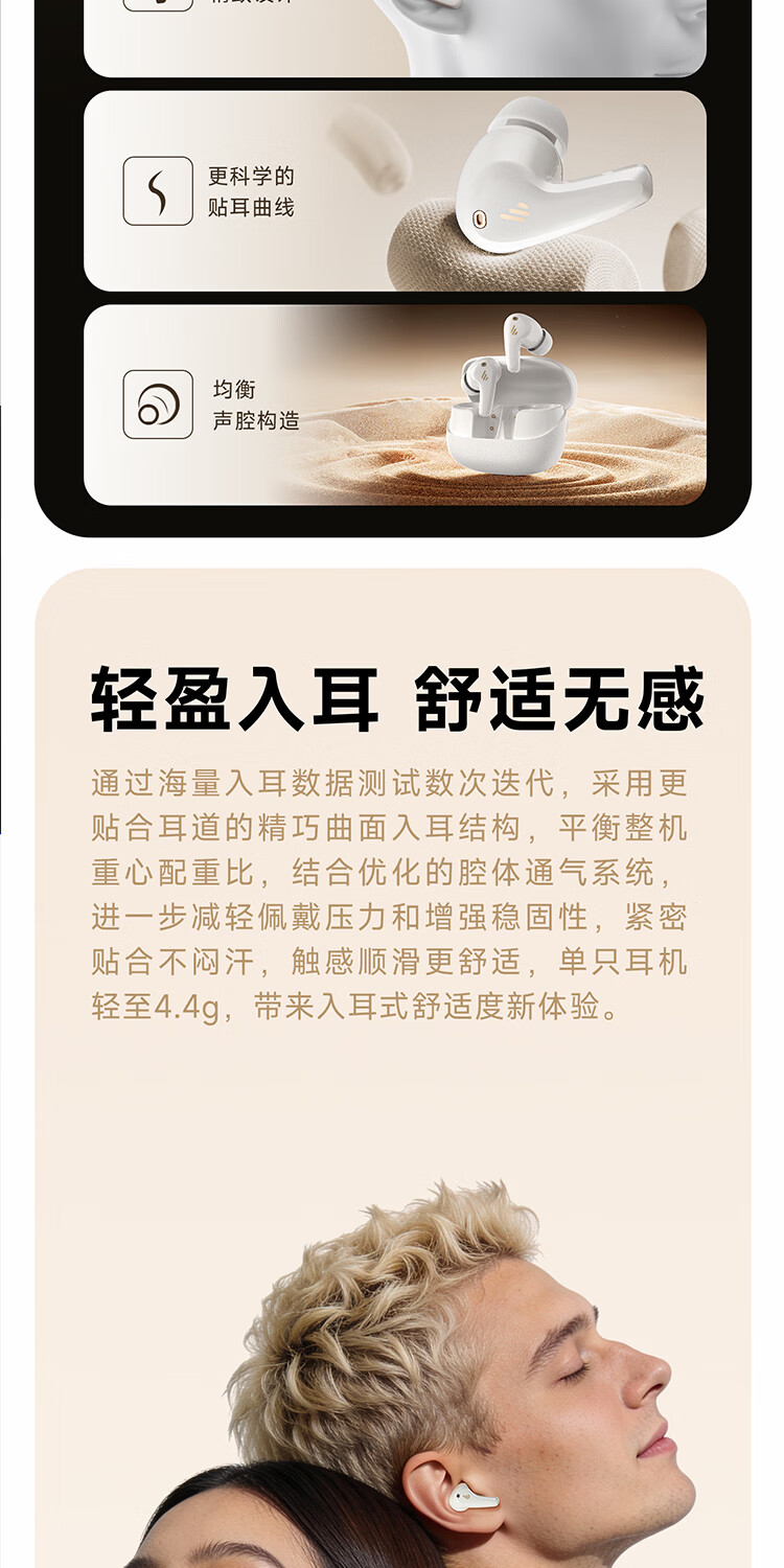 漫步者(EDIFIER)FitBuds Pro真无线主动降噪蓝牙耳机太空舱入耳式低延迟轻奢学生音乐游戏运动礼物适配于苹果华为 【皮革纹理设计】晨曦白+收纳袋