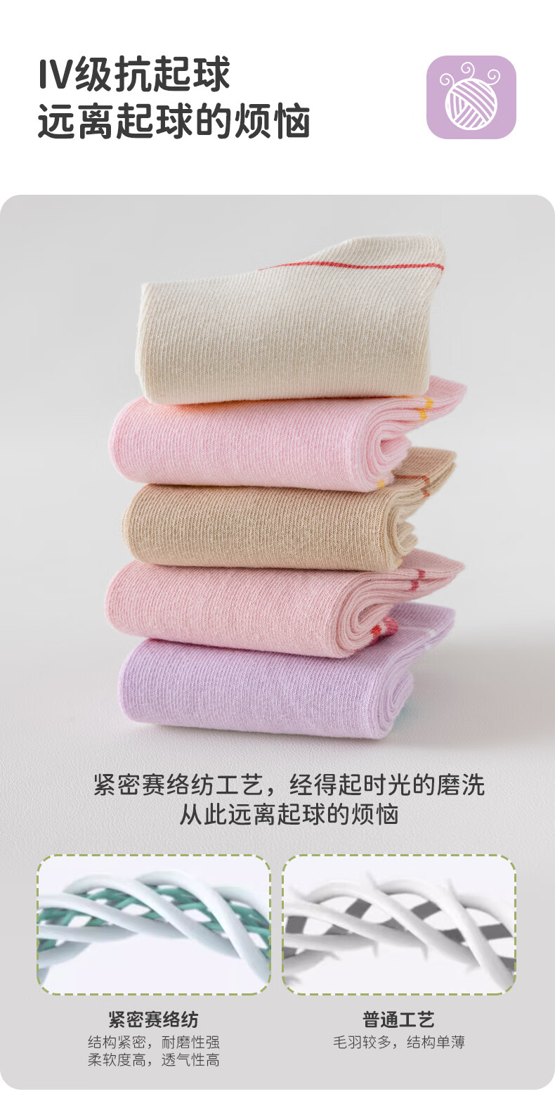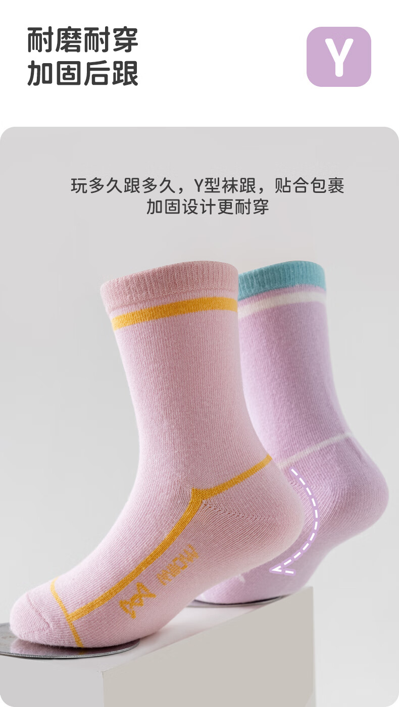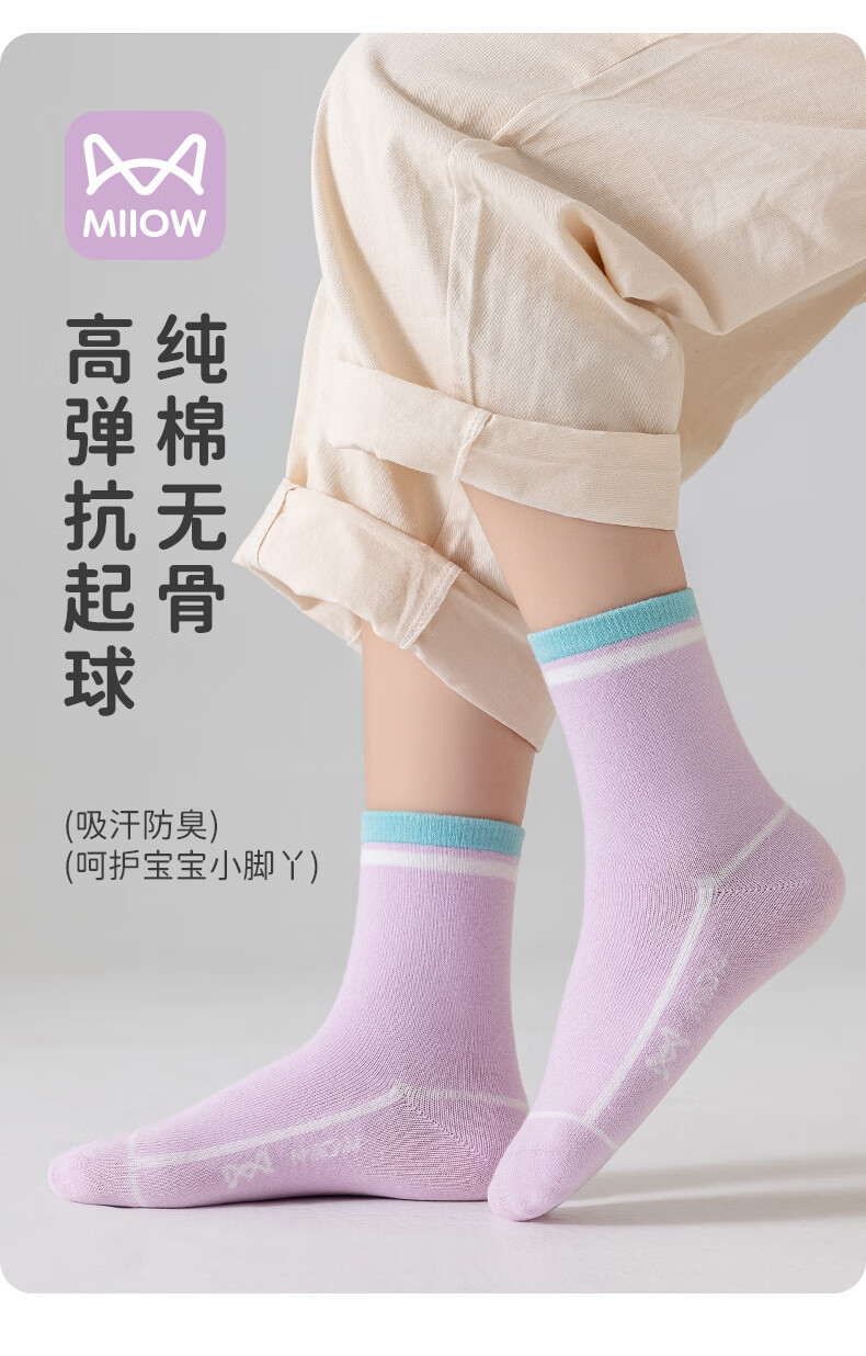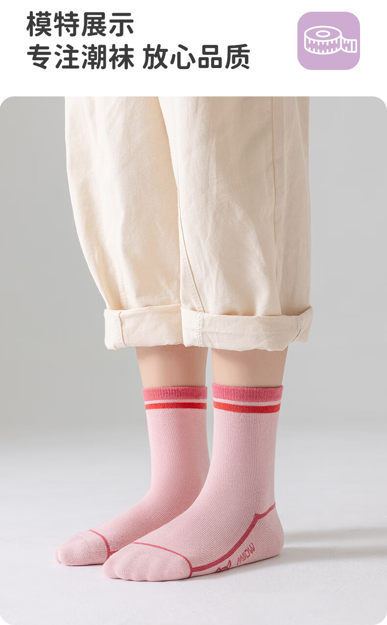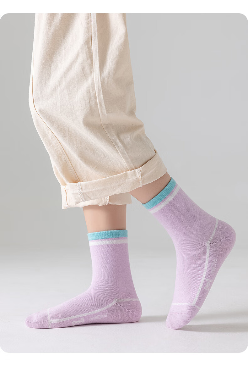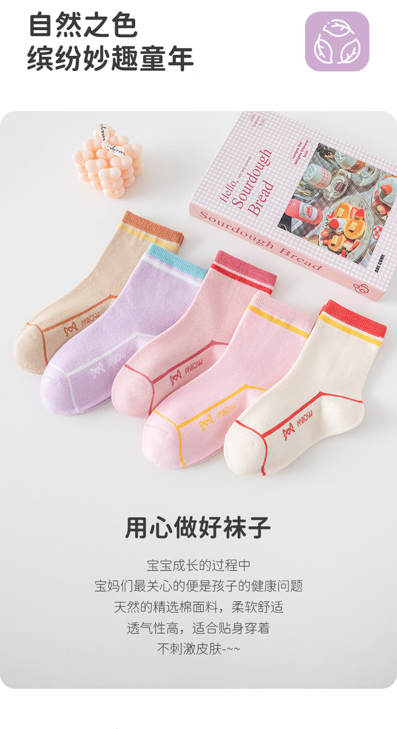 猫人儿童袜子男童纯棉秋冬款无骨中筒袜吸汗防臭透气女孩中大童袜5双 纯色logo 3-5岁 (M) 建议脚长12-15cm