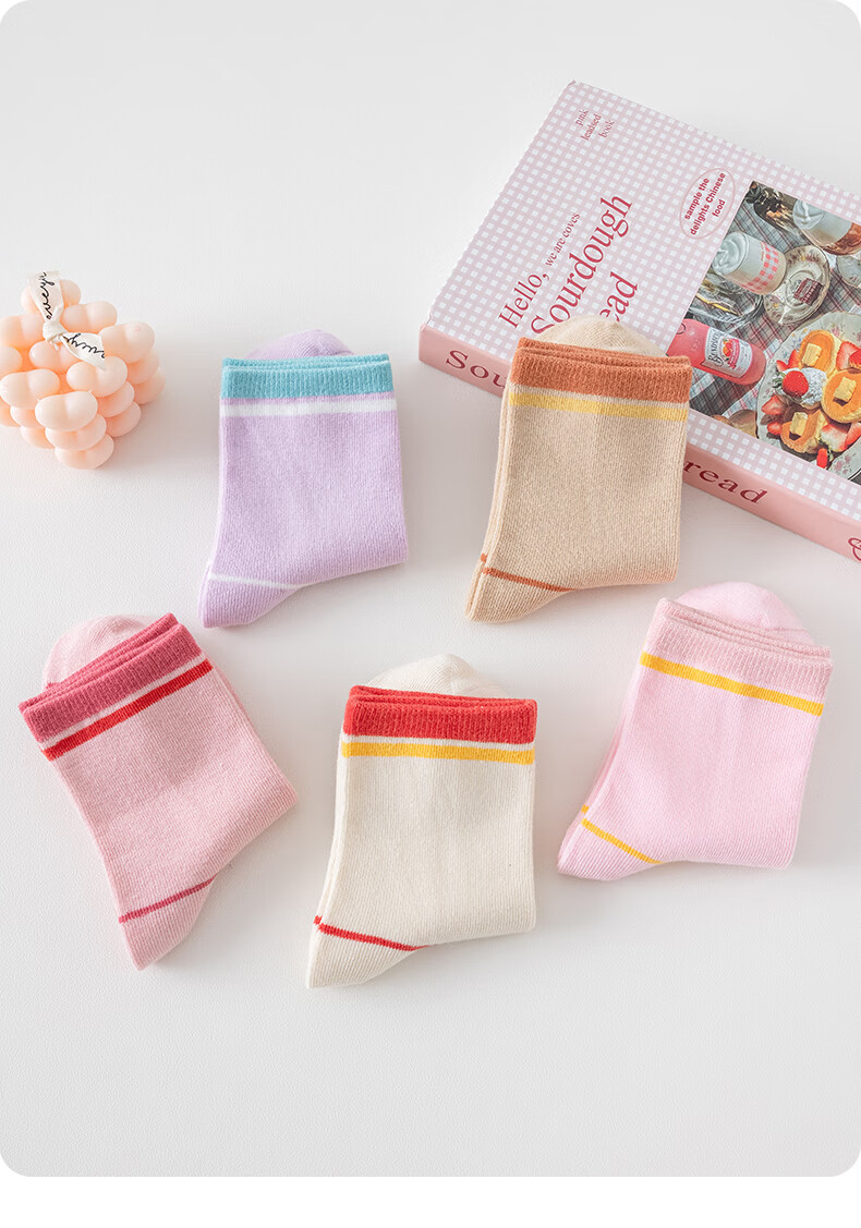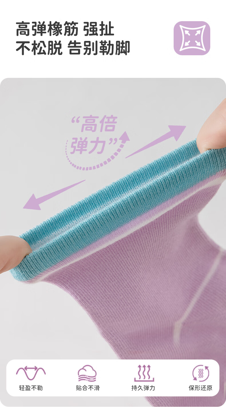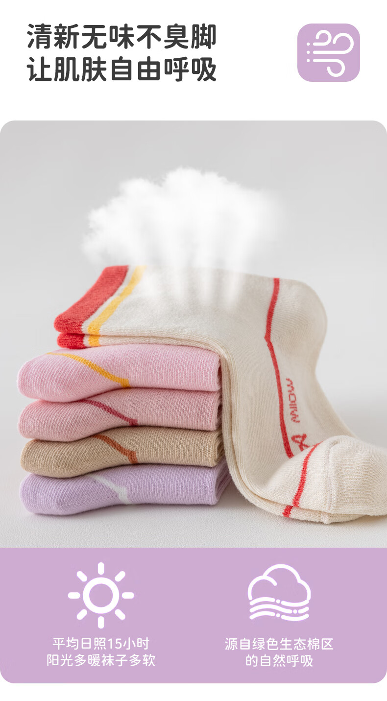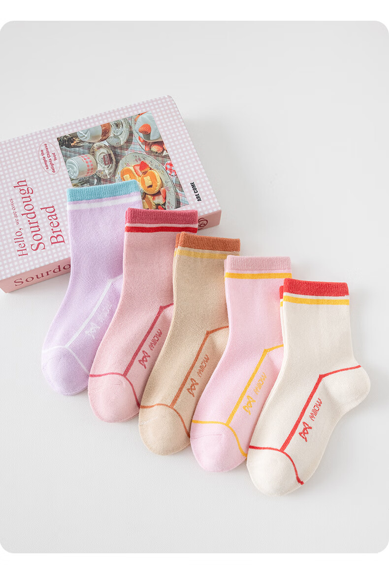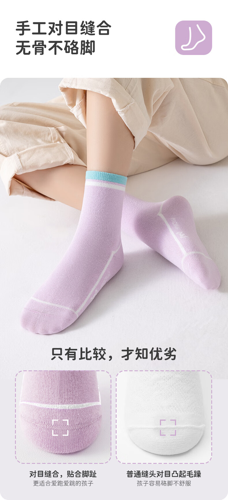 猫人儿童袜子男童纯棉秋冬款无骨中筒袜吸汗防臭透气女孩中大童袜5双 纯色logo 3-5岁 (M) 建议脚长12-15cm