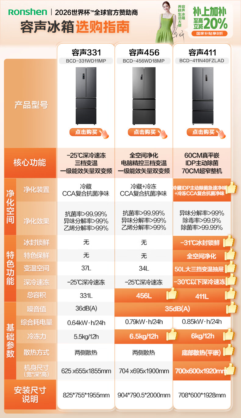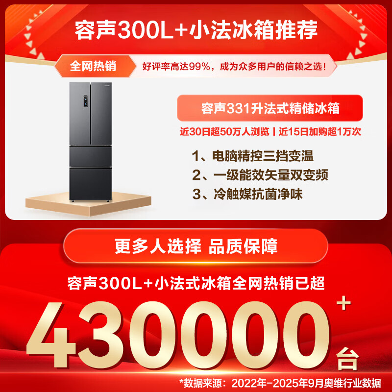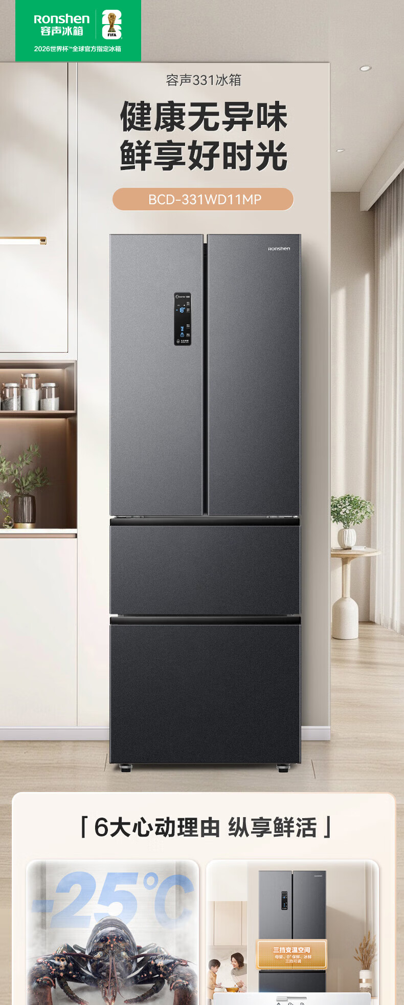 容声331L法式多门冰箱小户型超薄一级能效风冷无霜双变频节能四开门以旧换新BCD-331WD11MP国家补贴